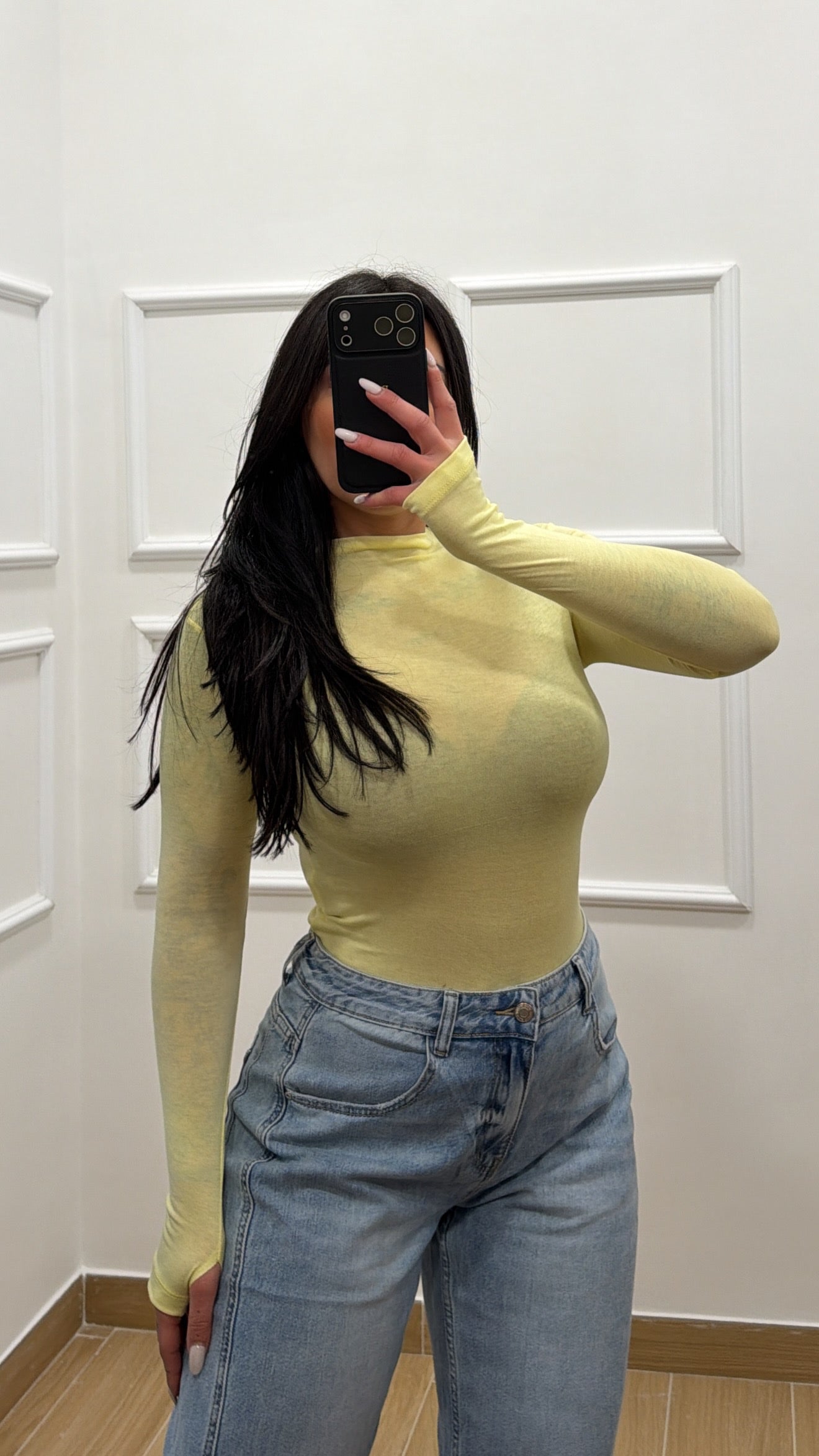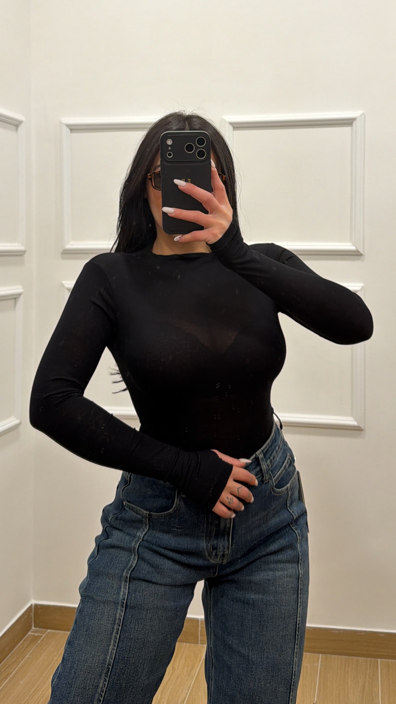 Maglia semivelata con manica a guanto