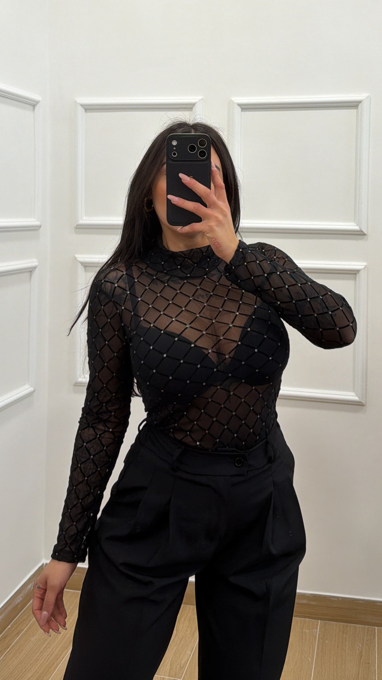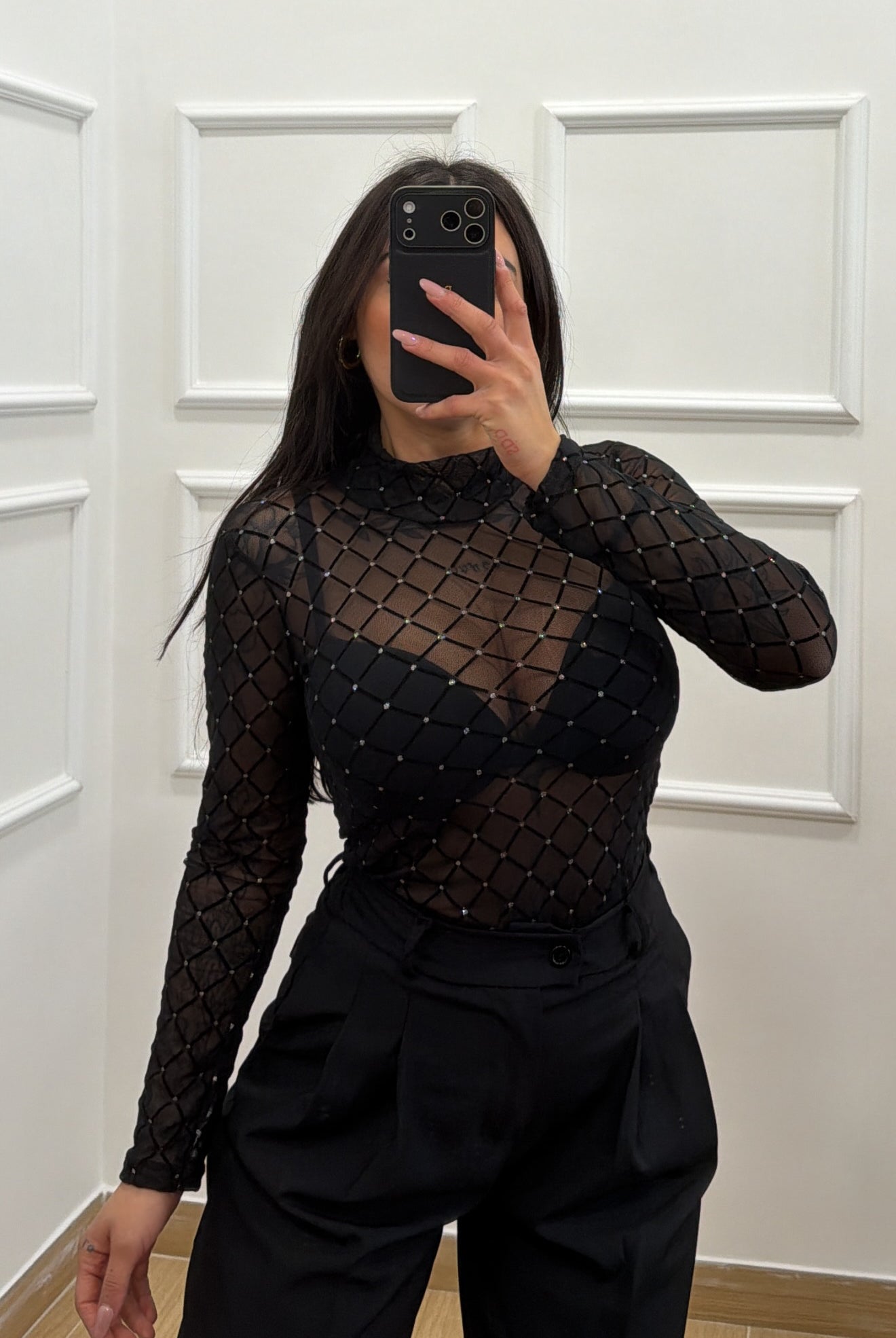 Pantalone tuta a palazzo con brillantini taglia unica