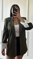 Blazer oversize con spallina e risvolto in camicia.