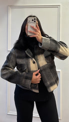 Cappottino in lana crop a quadri taglia unica con collo ECOPELLICCIA