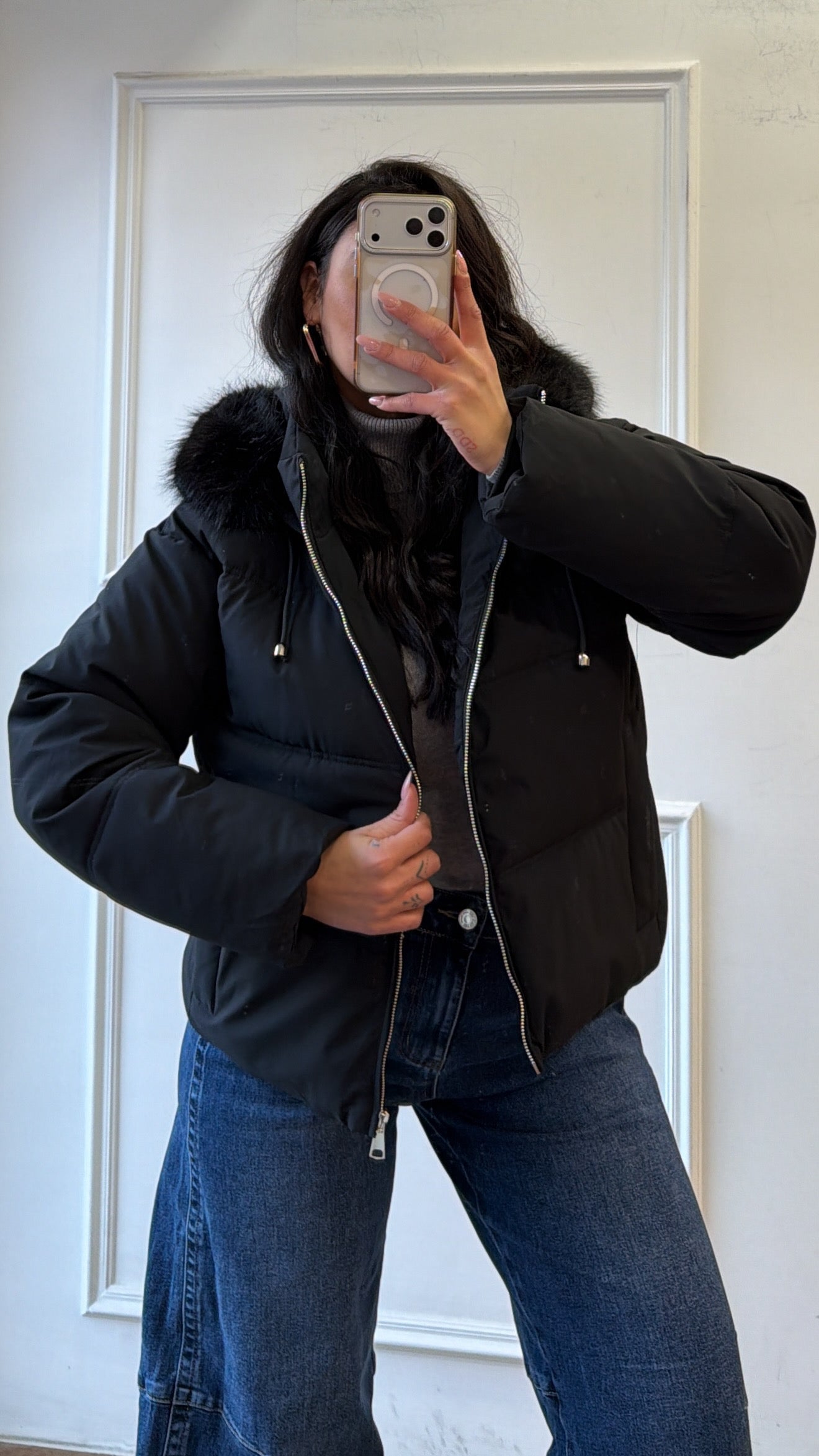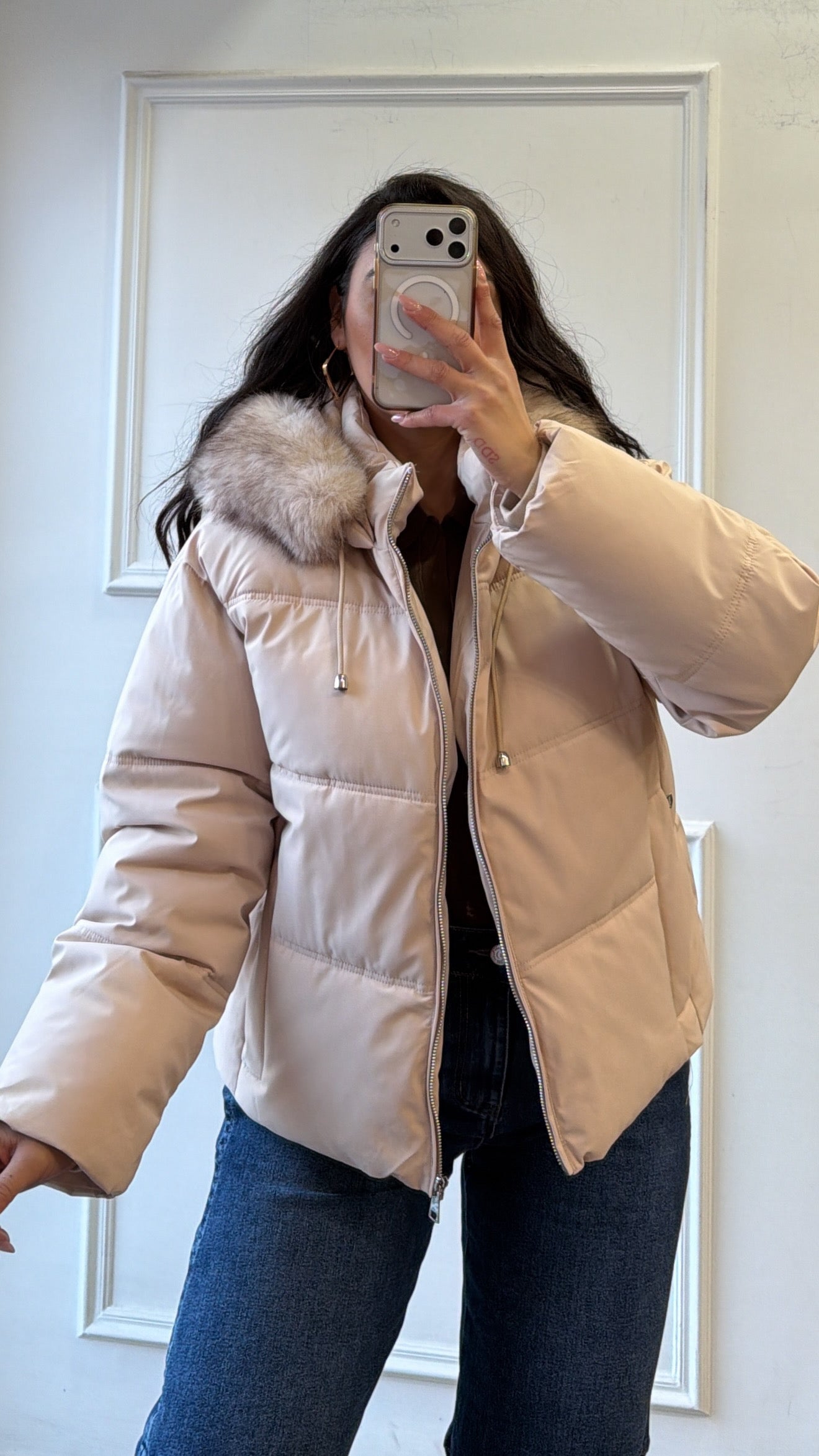 Giubbino imbottino con cappuccio rivestito in ECOPELLICCIA