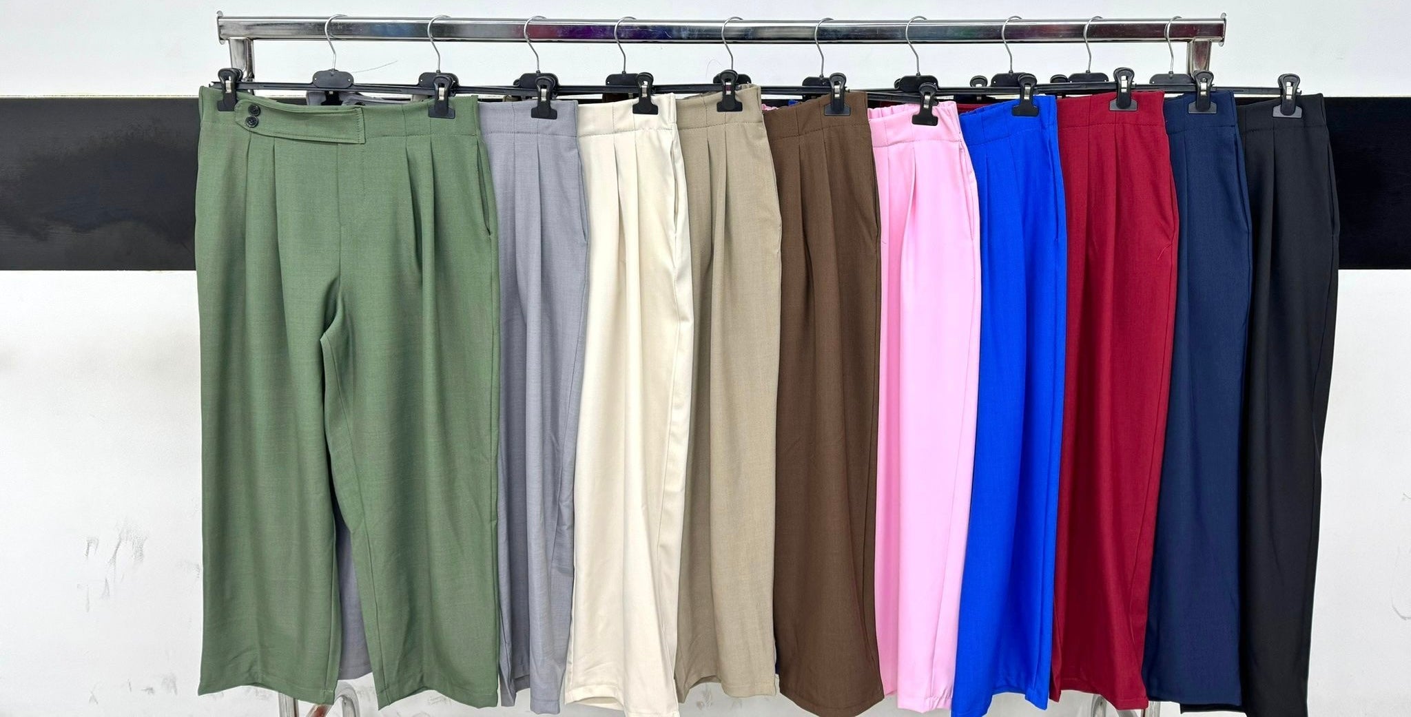 Pantalone doppio bottone, elastico taglia unica e veste fino ad una 56.