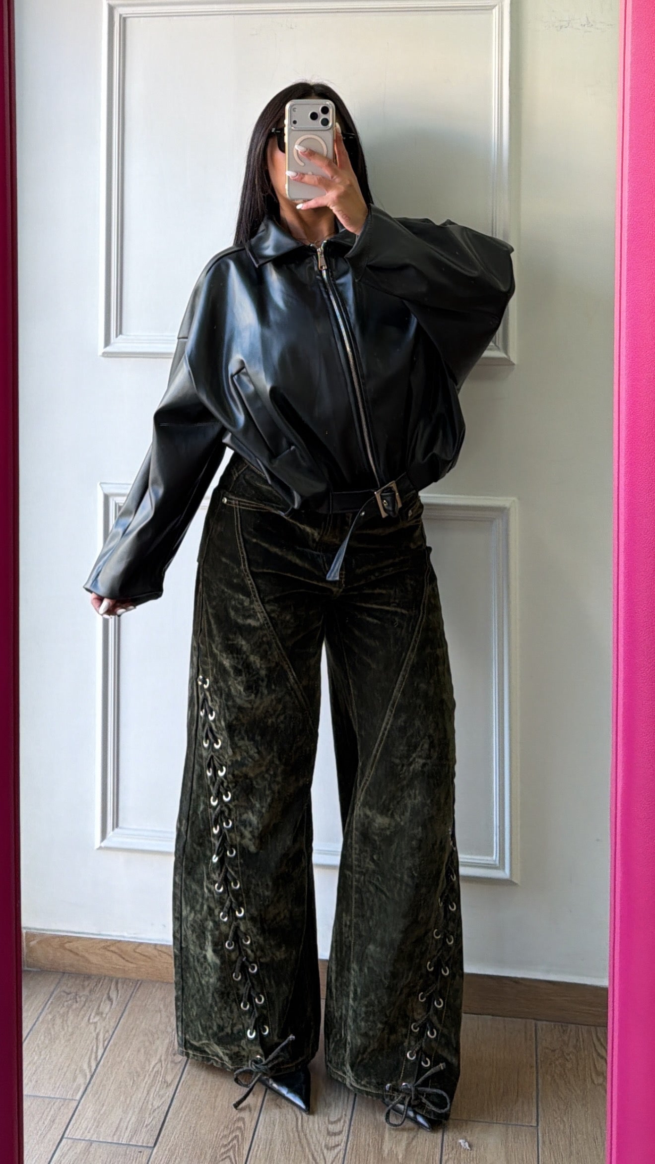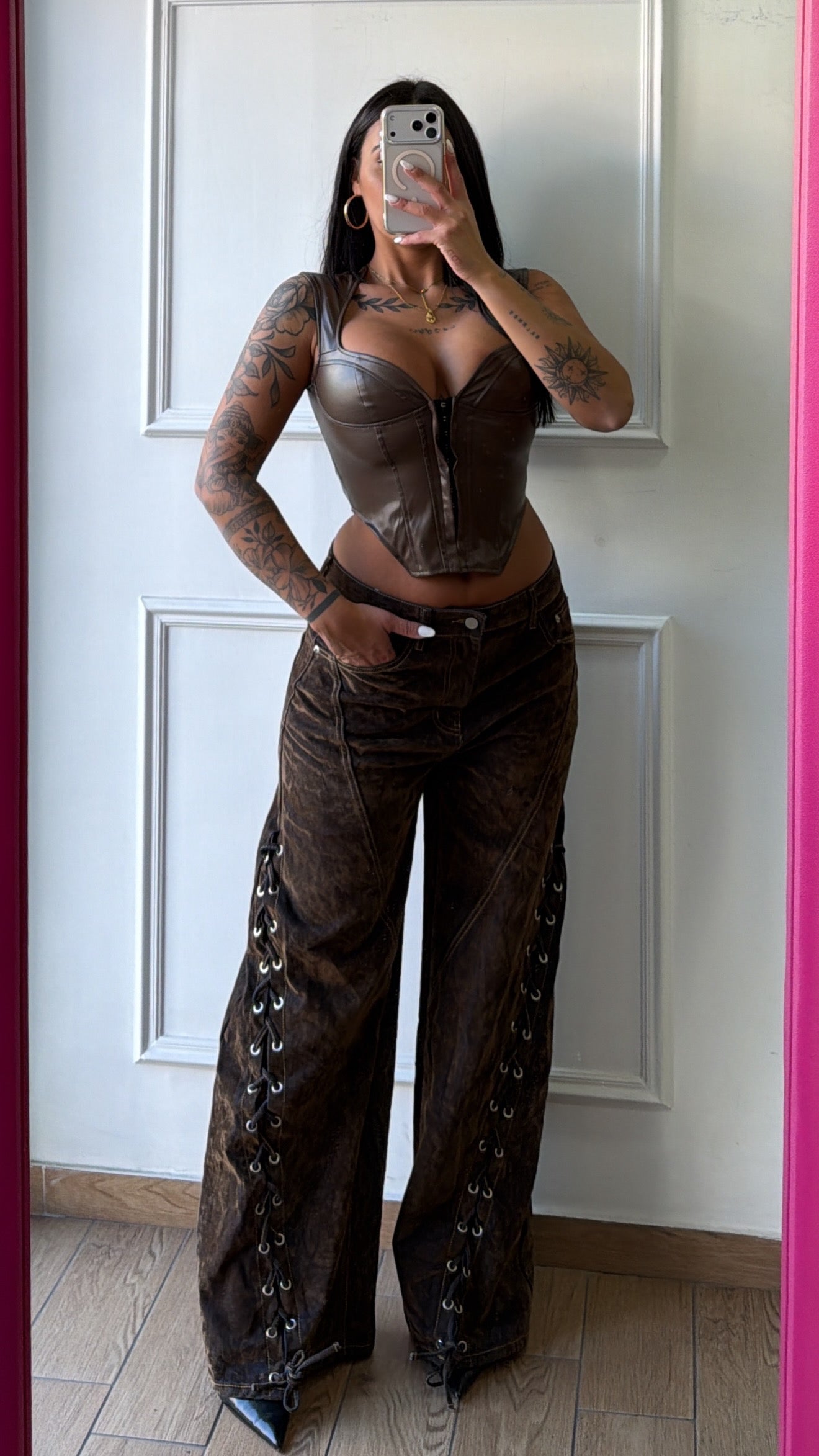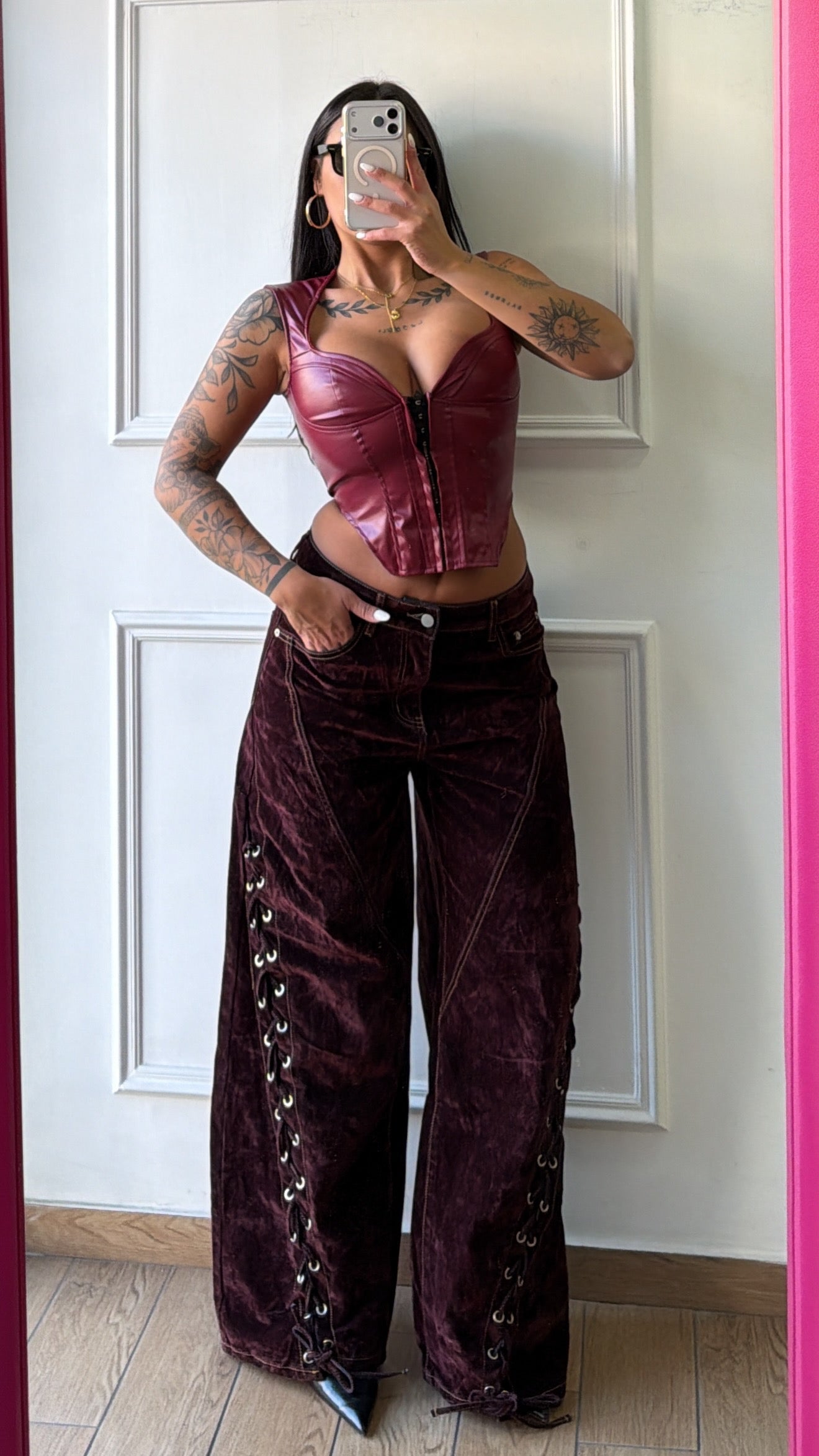 Jeans in velluto stringato a palazzo