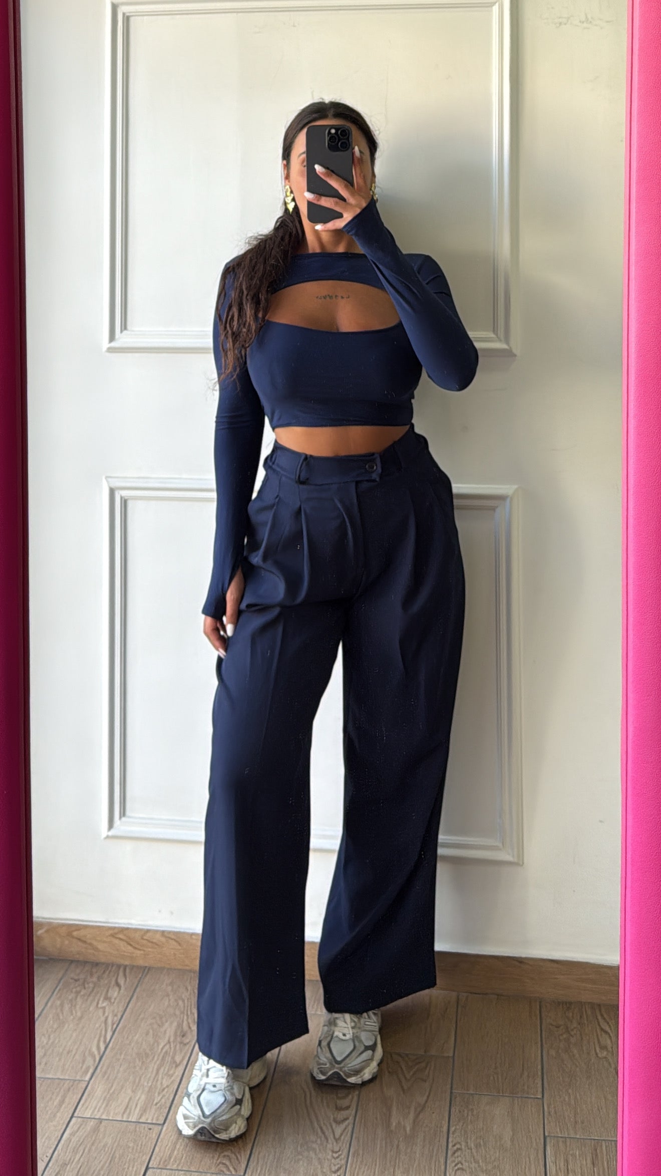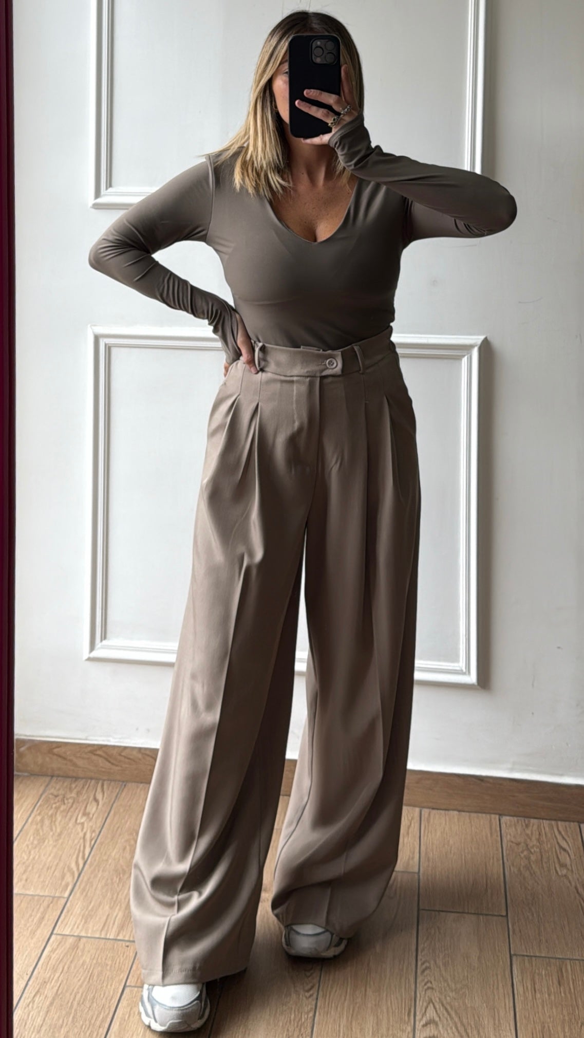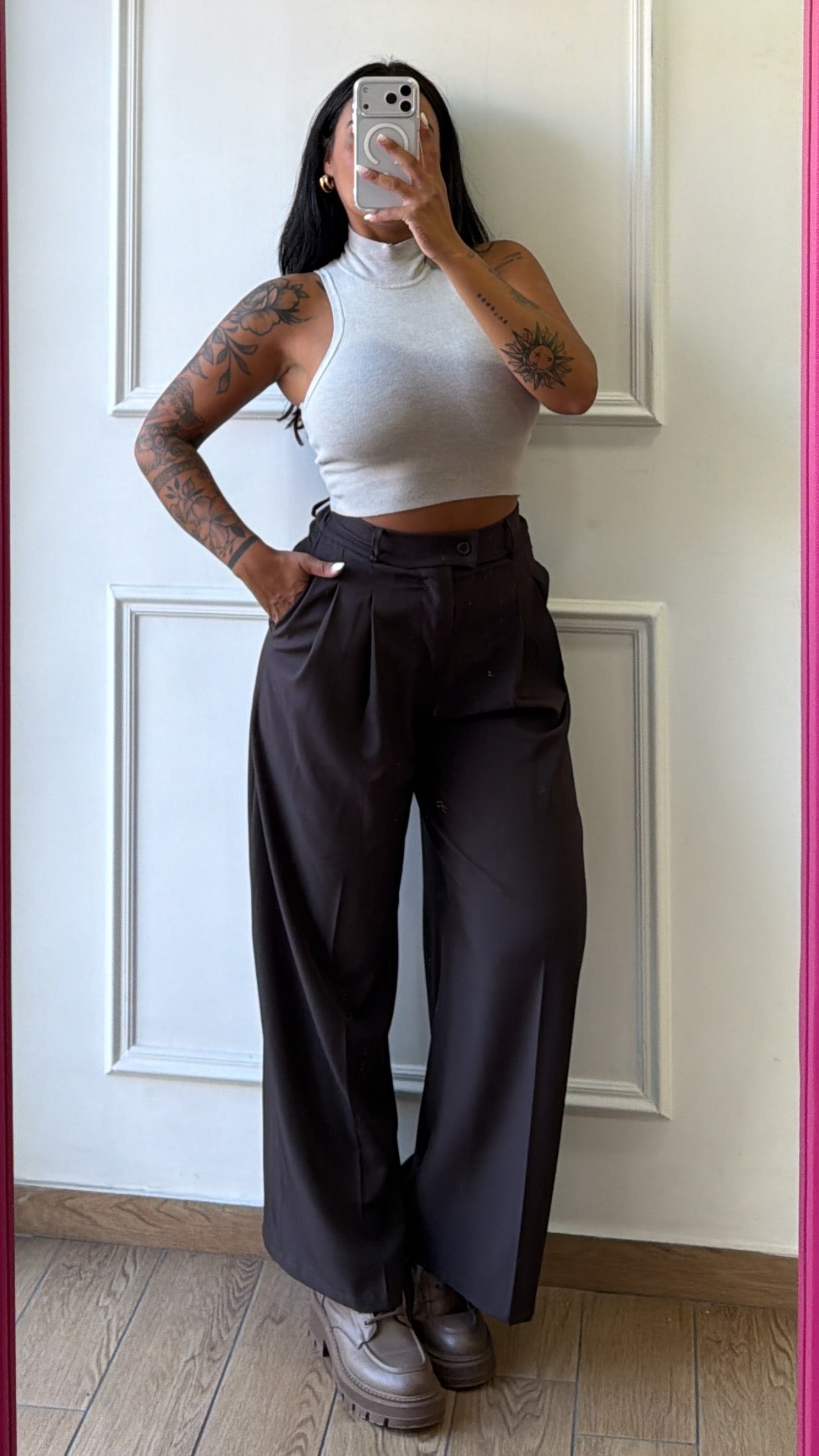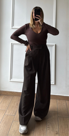 Pantalone con elastico sul retro a palazzo taglia unica vestibilità fino alla taglia L