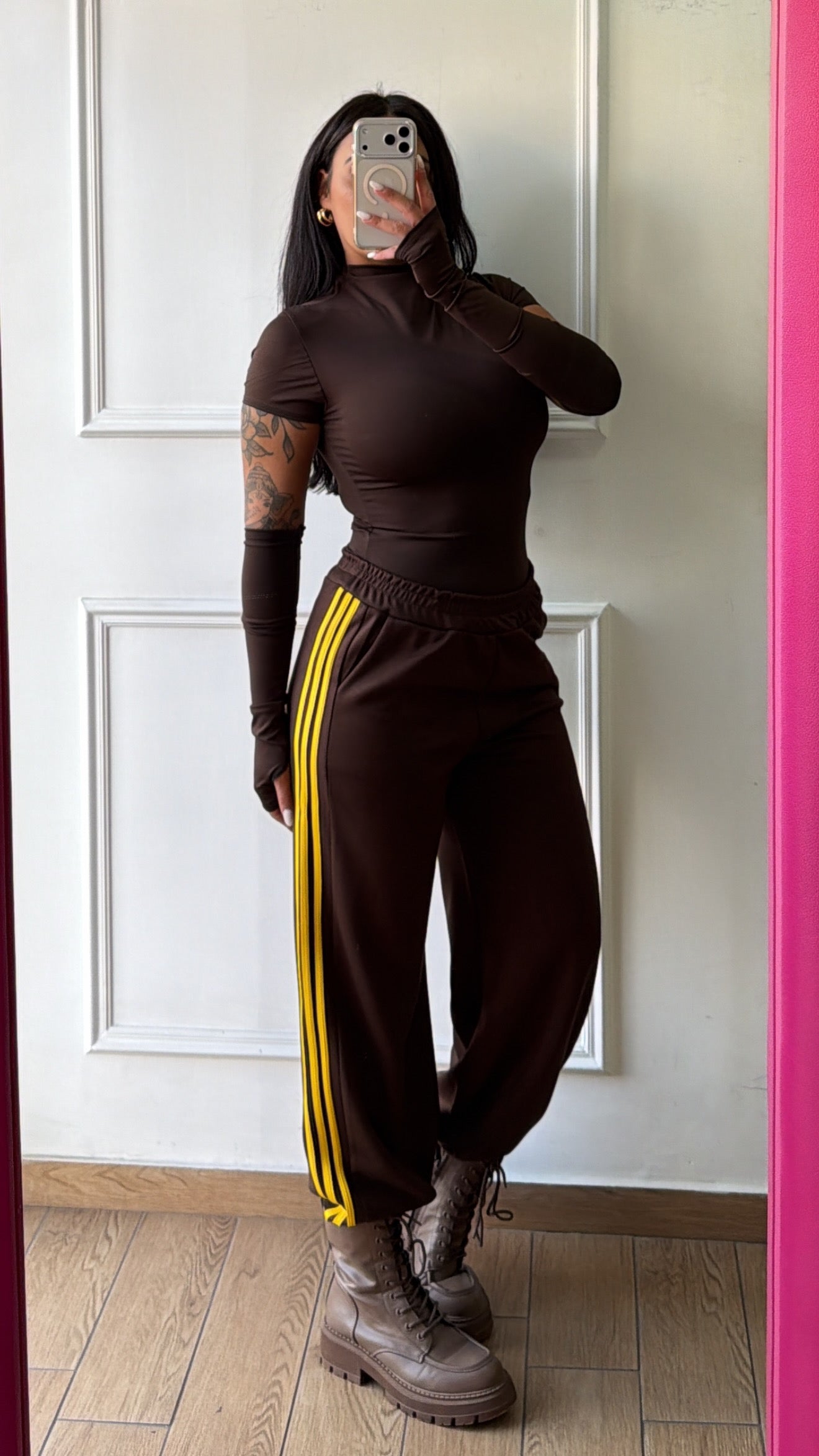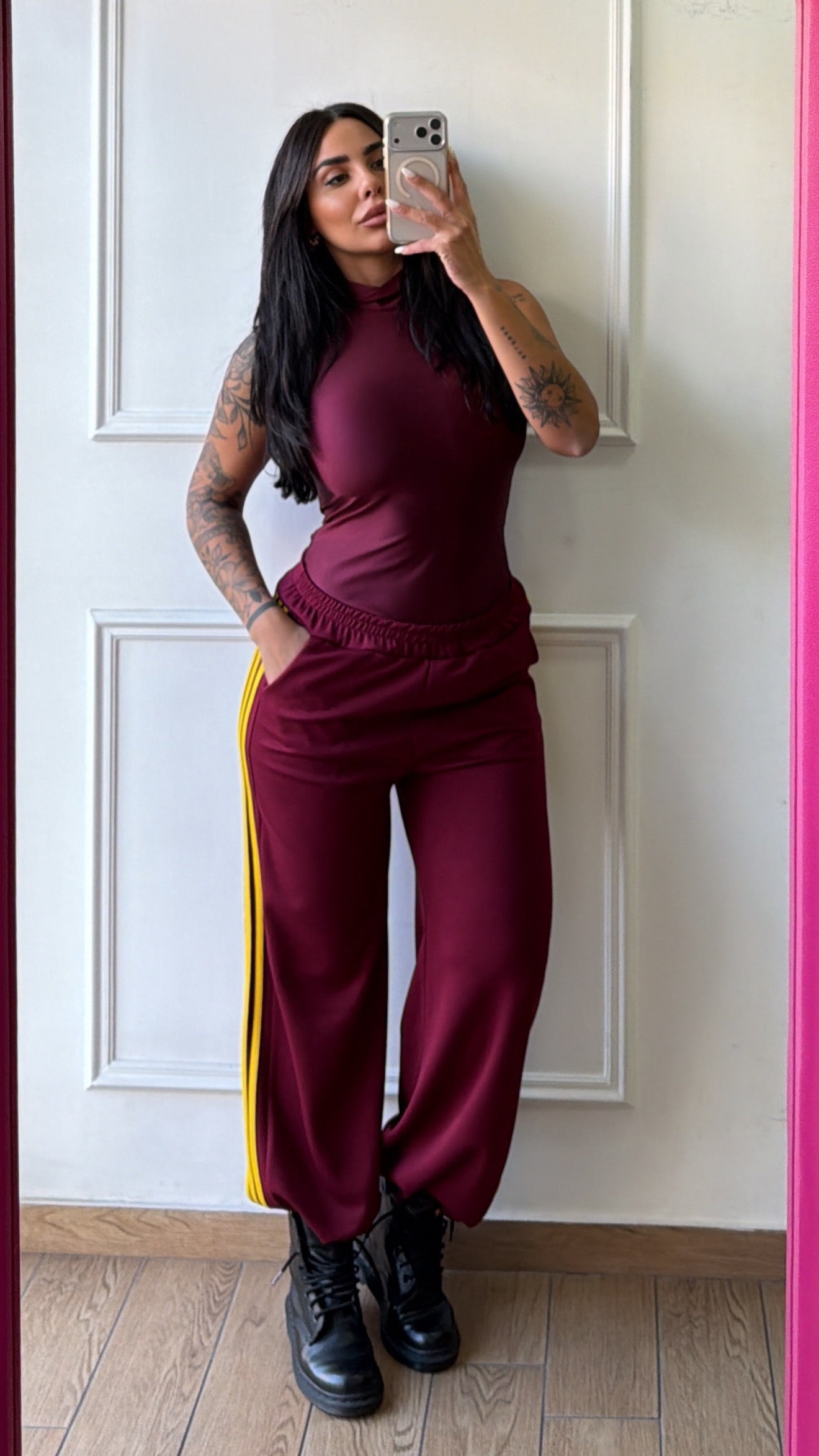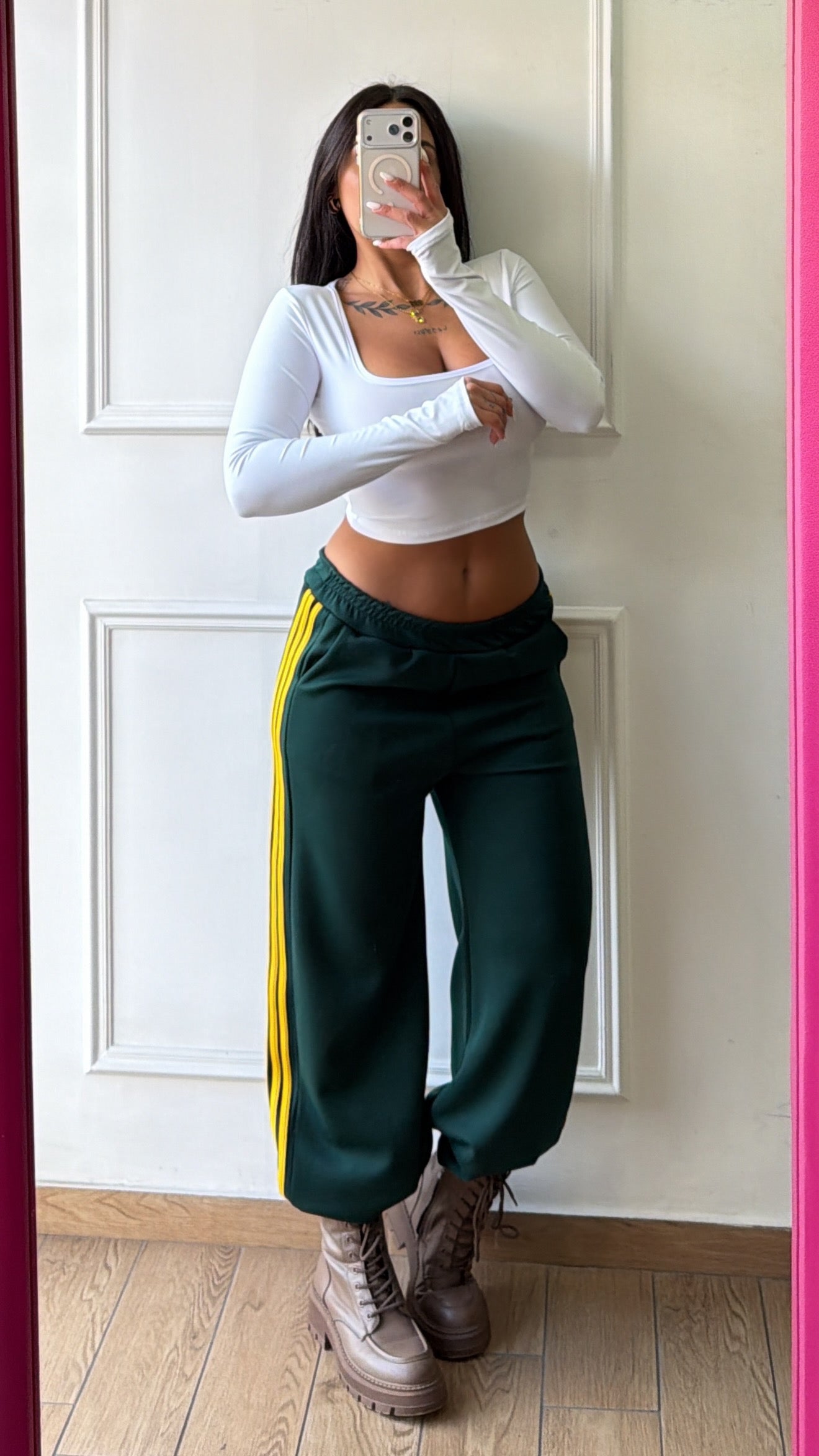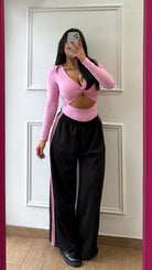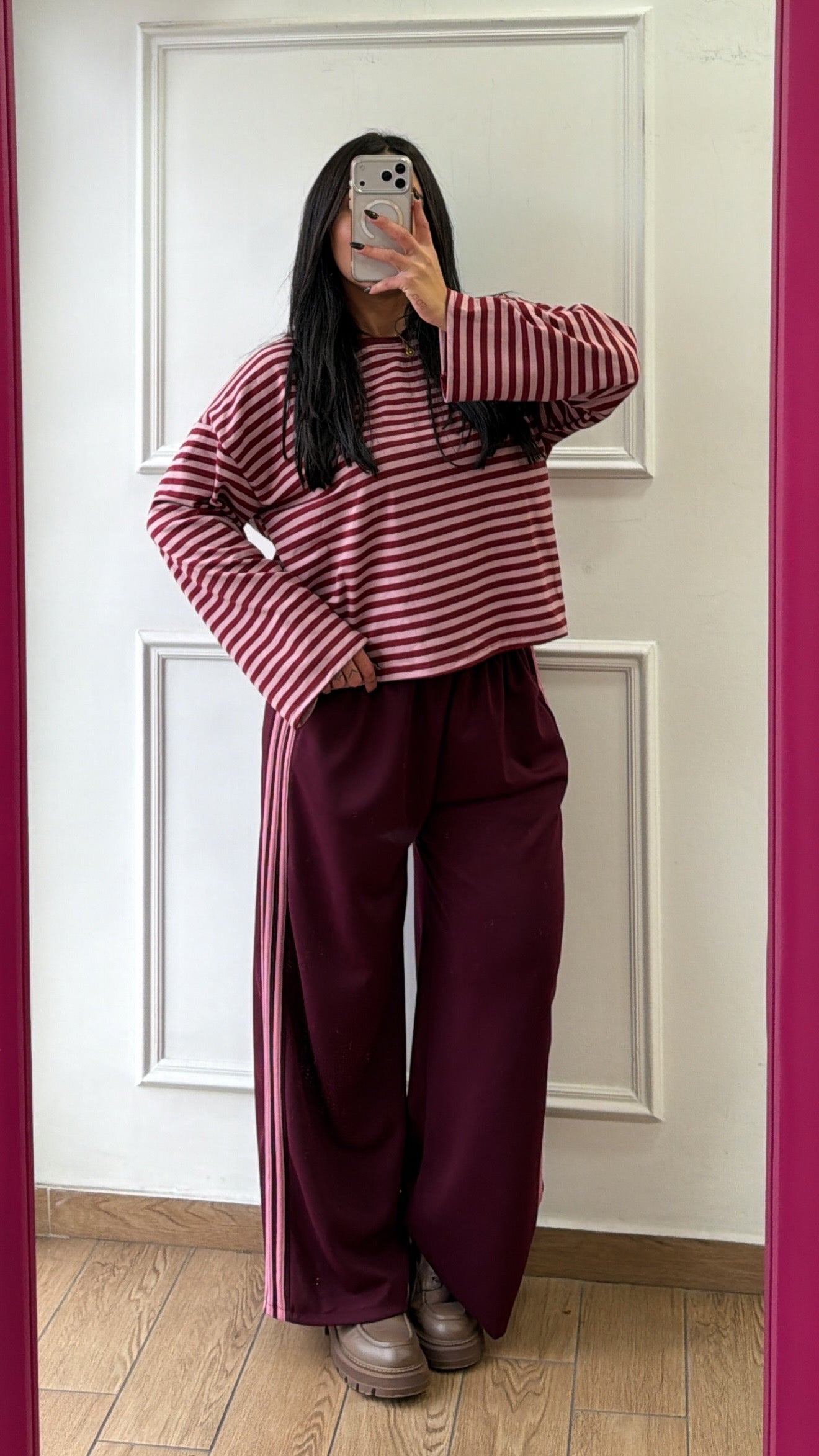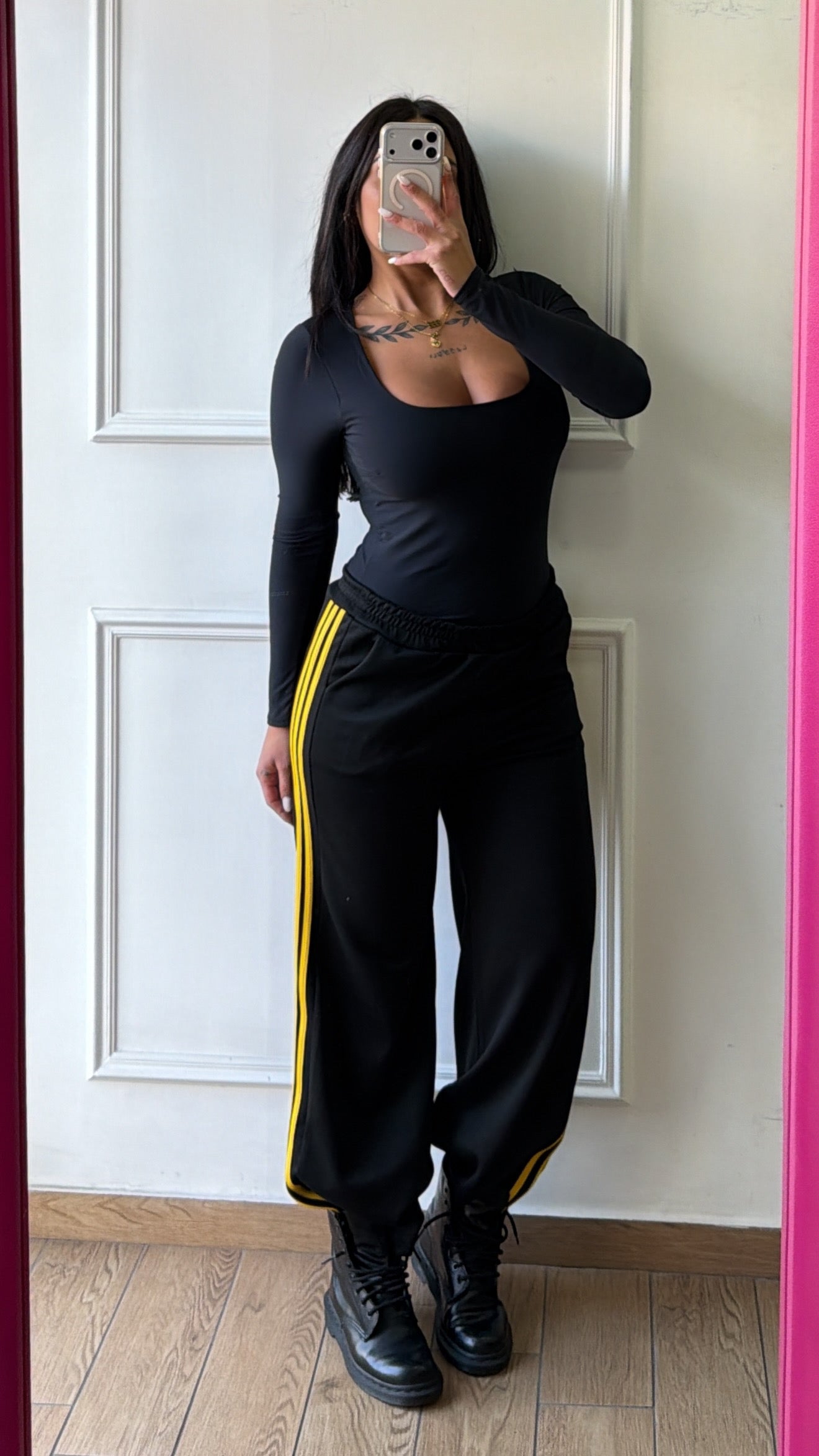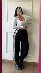 Pantalone palazzo con bande laterali e elastico in vita,taglia unica vestibilità fino alla XL
