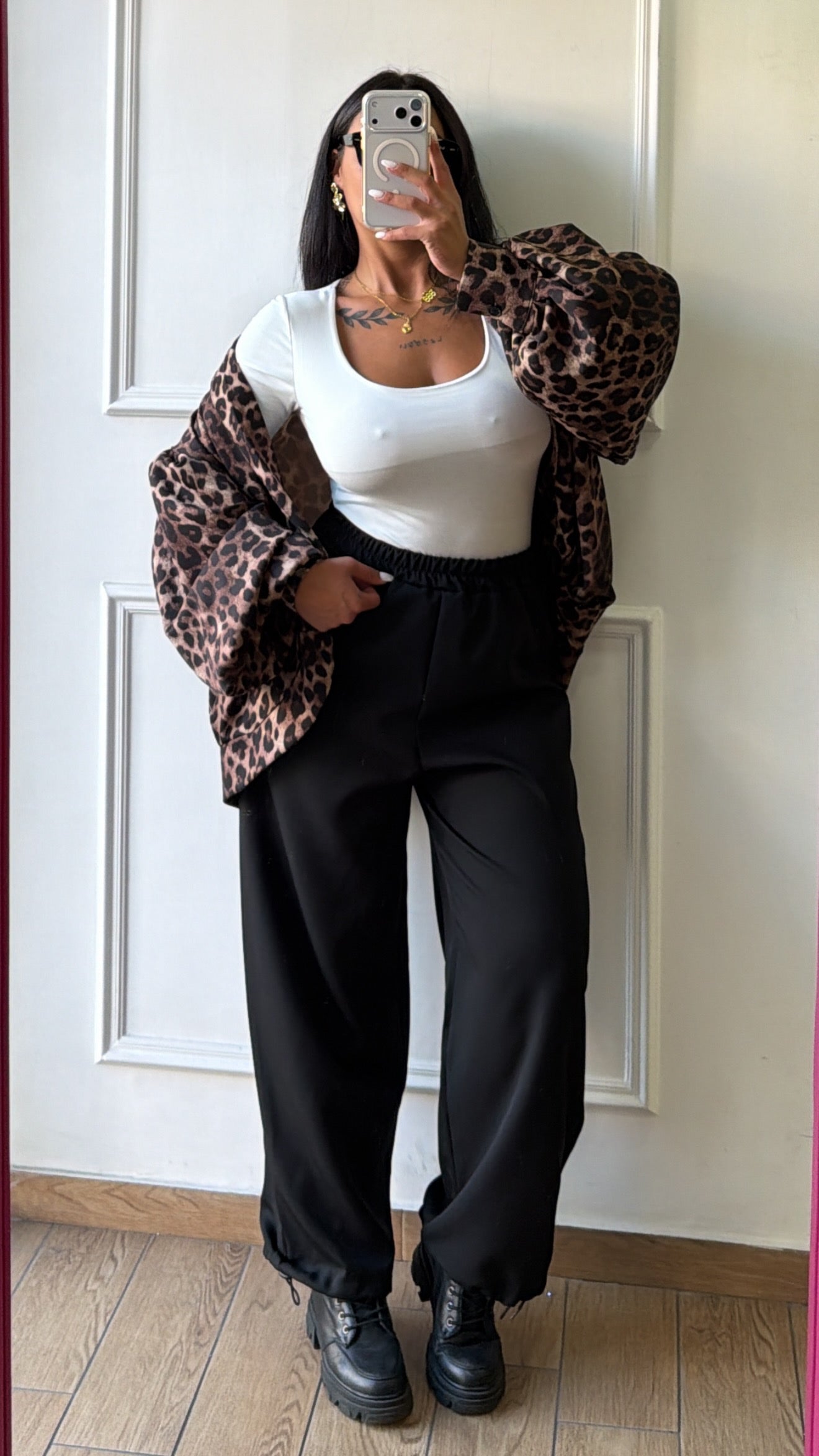 Pantalone in tessuto con elastico in vita e lacci regolabili alla caviglia,taglia unica vestibilitá fino alla XXL.
