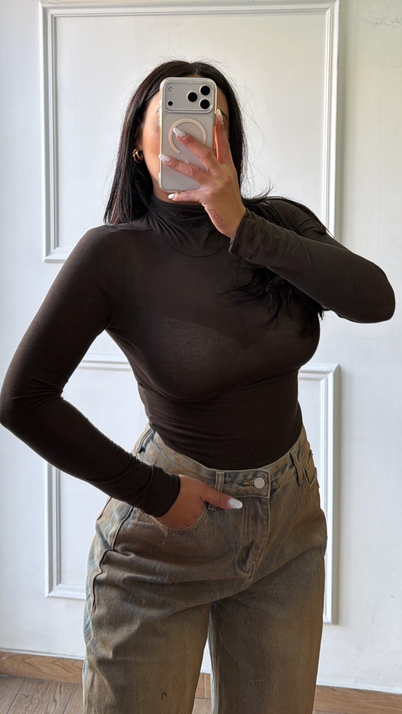 Maglia semivelata collo alto in cashmere top quality taglia unica