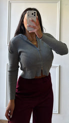 Maglia crop con zip e cappuccio lana rasata tg unica