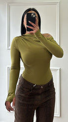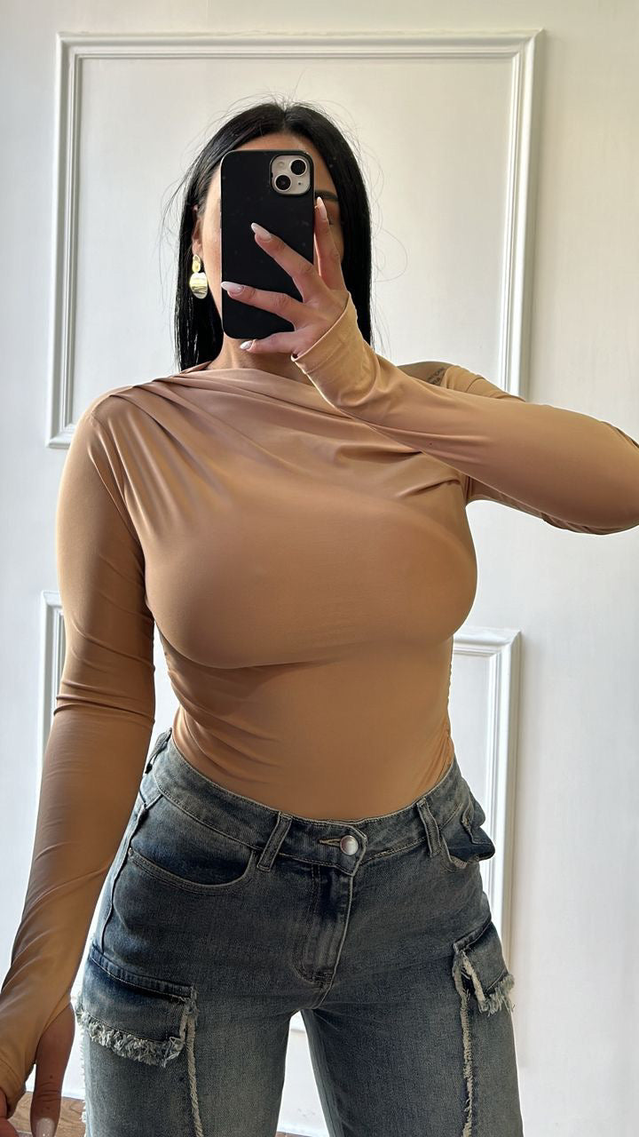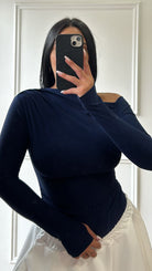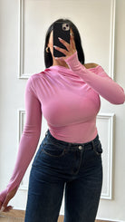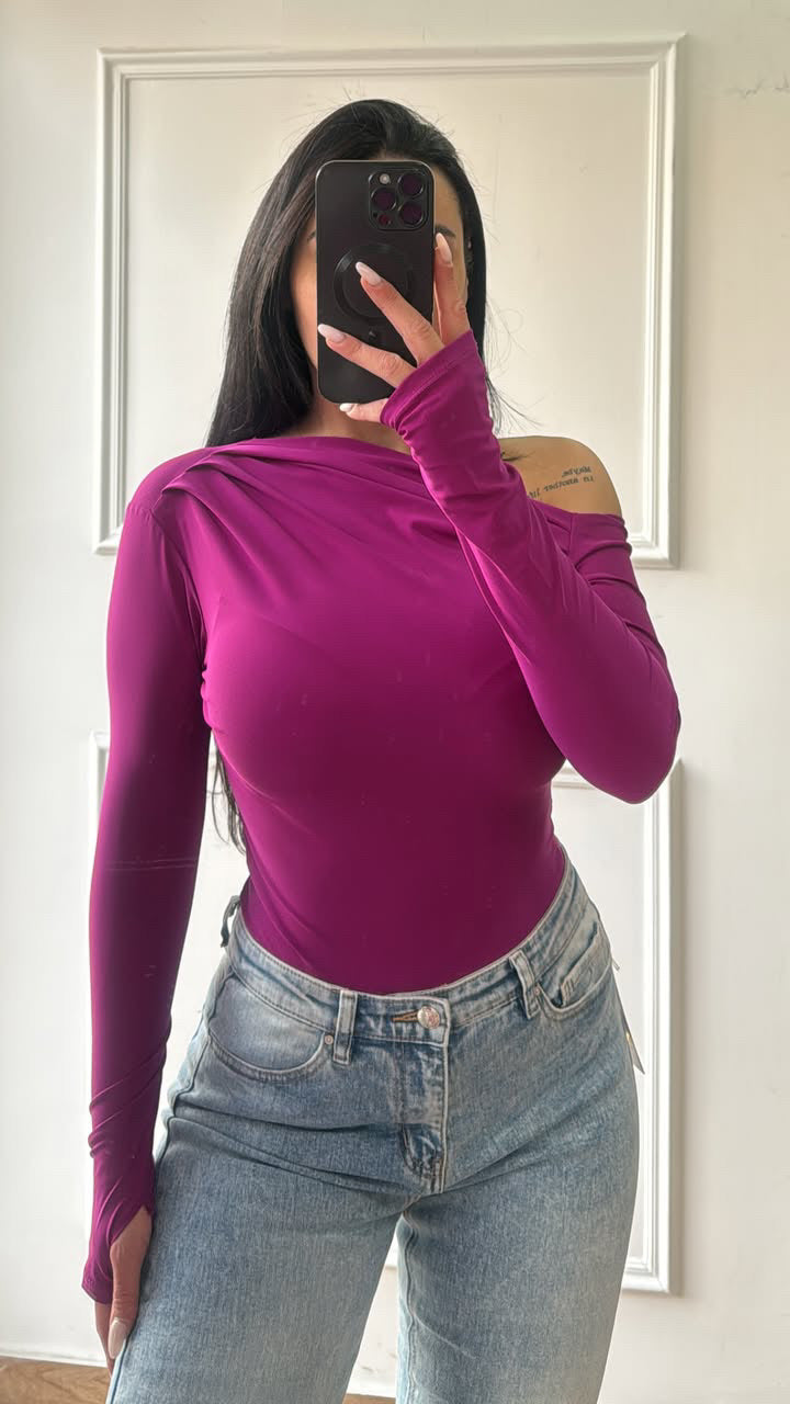 Maglia con scollo asimmetrico su spalla, taglia unica.