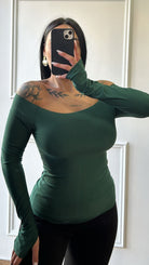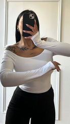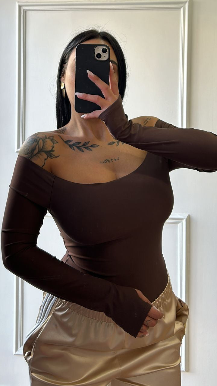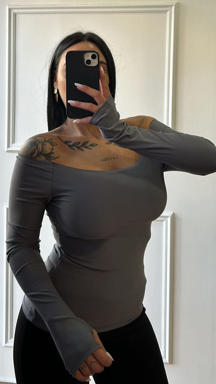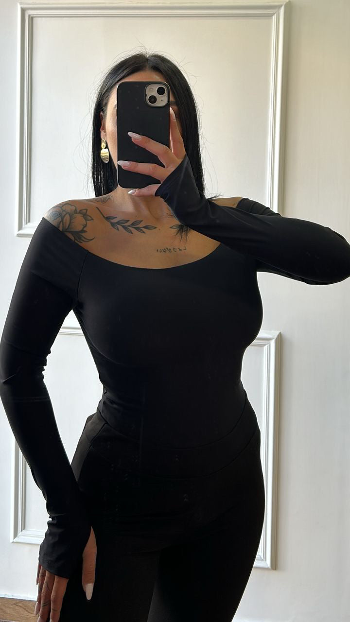 Maglia laser scollo a barca in lycra, taglia unica.