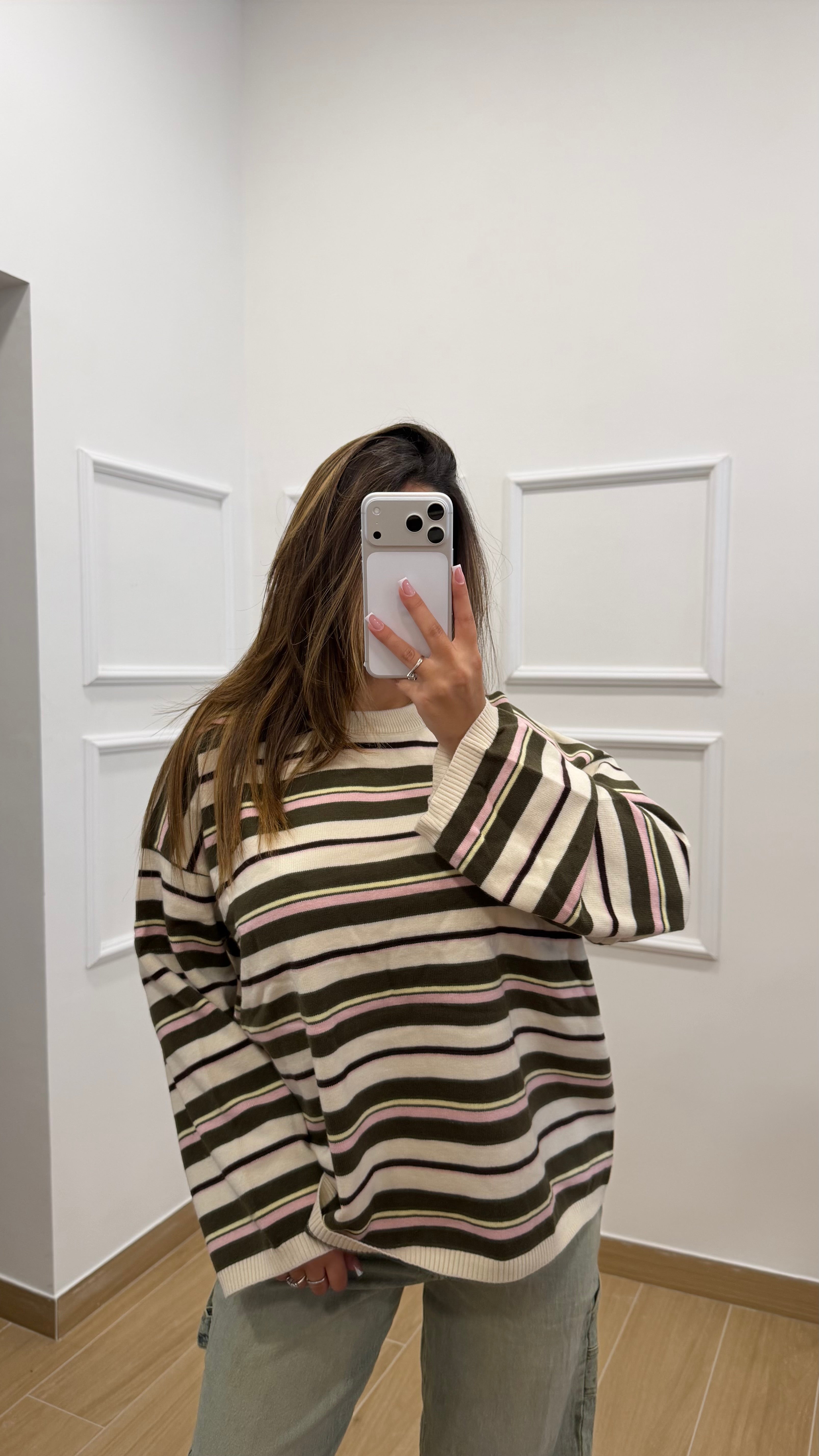 Pull in lana rasata a righe taglia unica