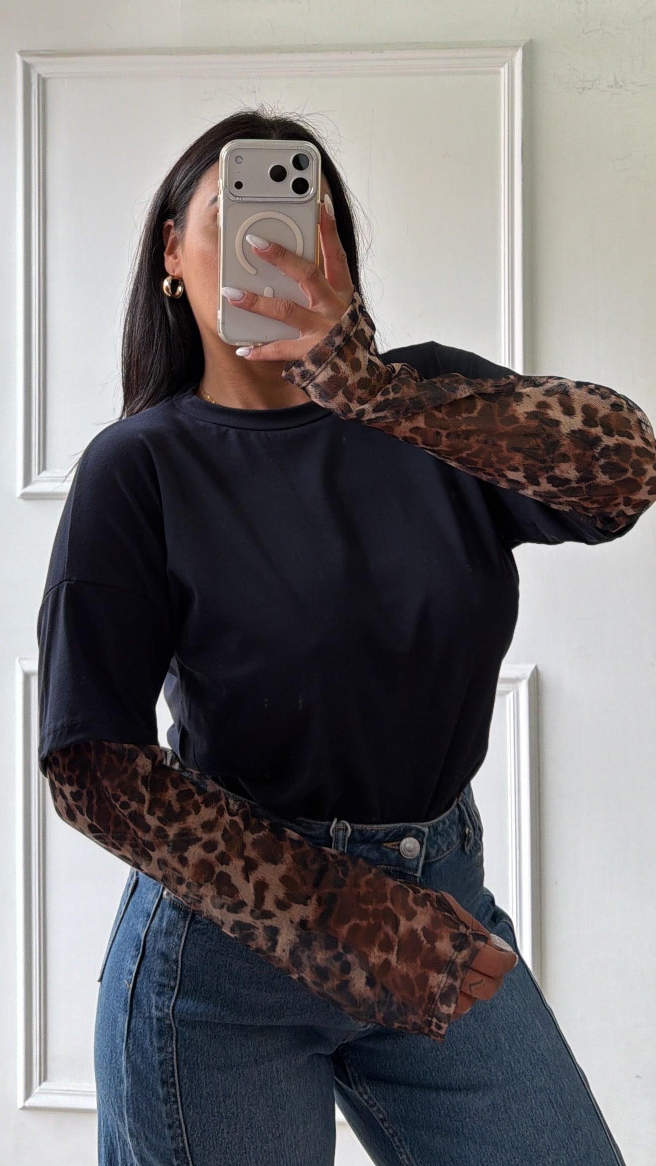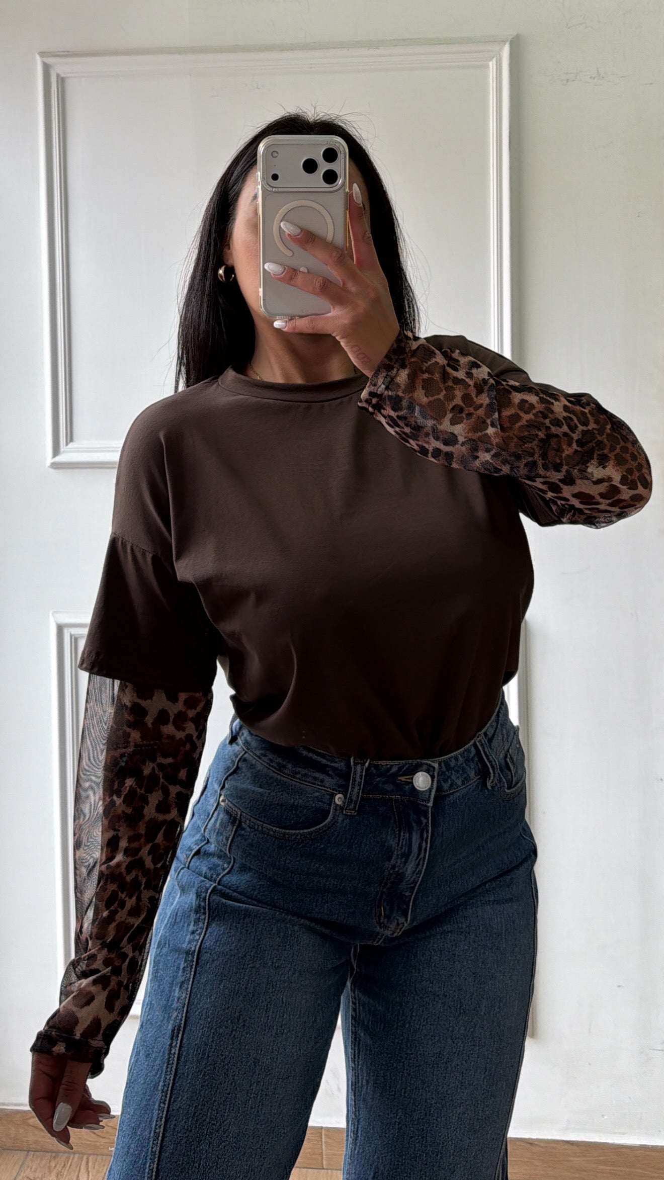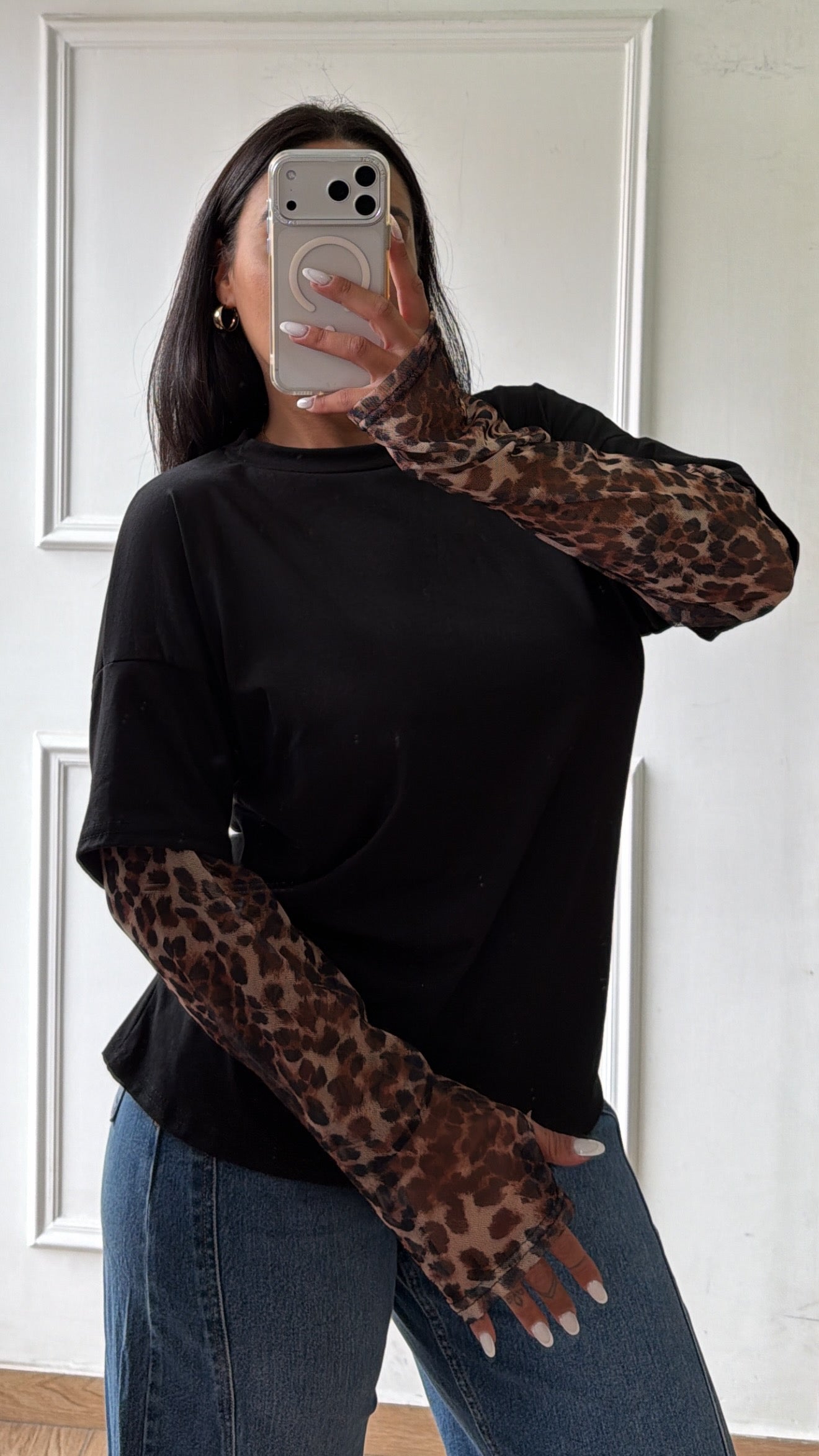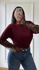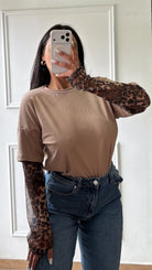 Shirt con maniche in tessuto animalier a guanto
