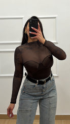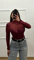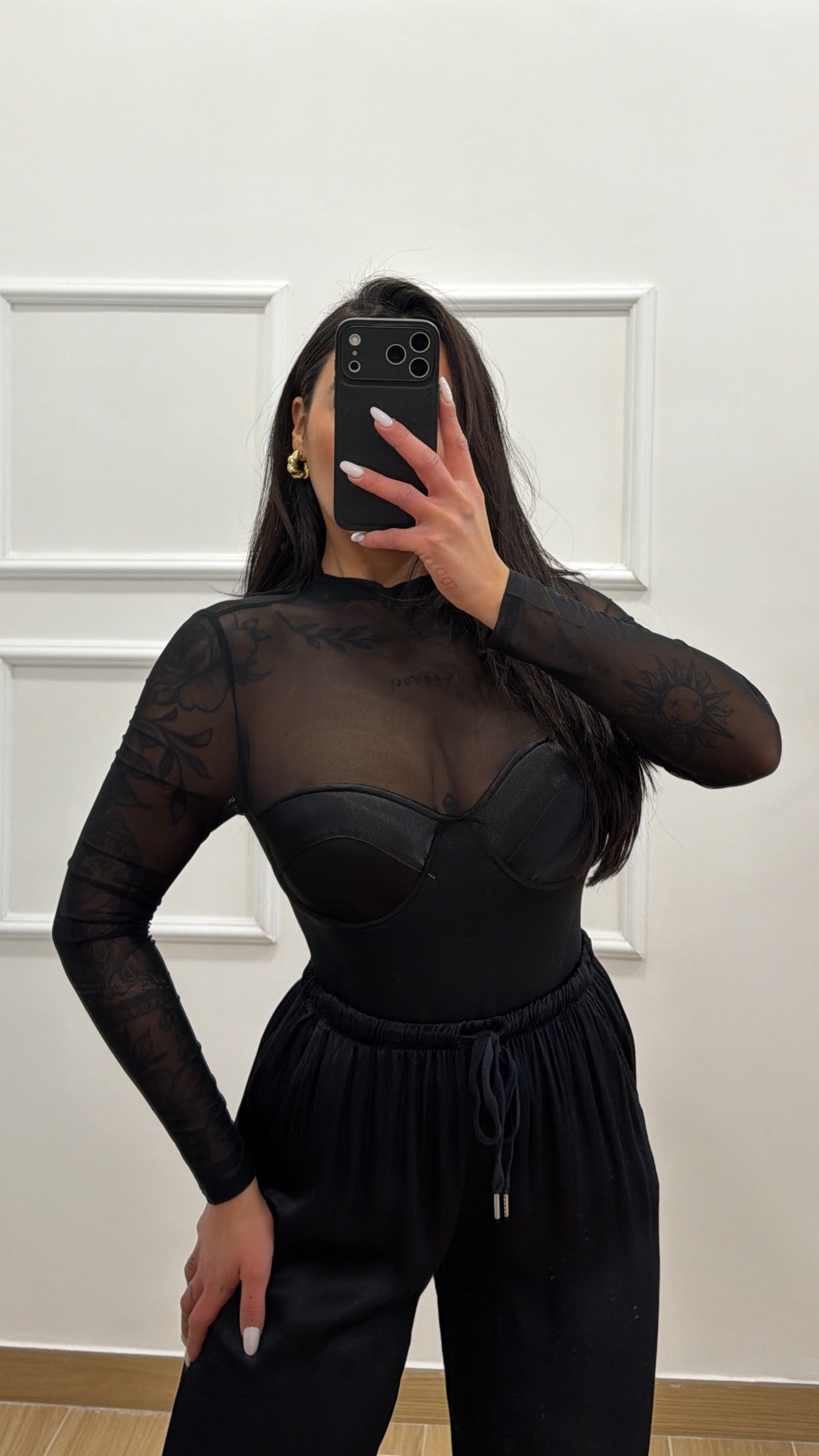 Body con maniche semi velate e sul davanti in raso elastico taglia unica