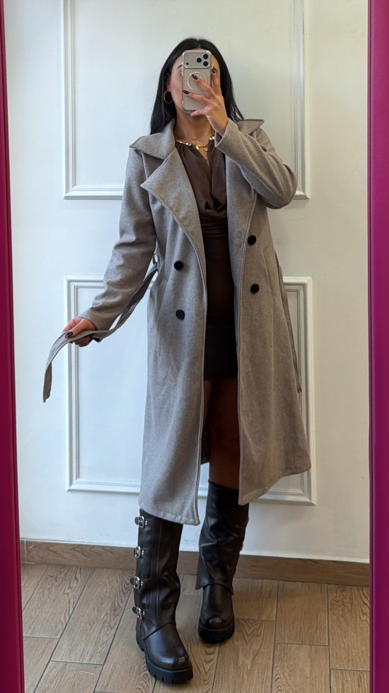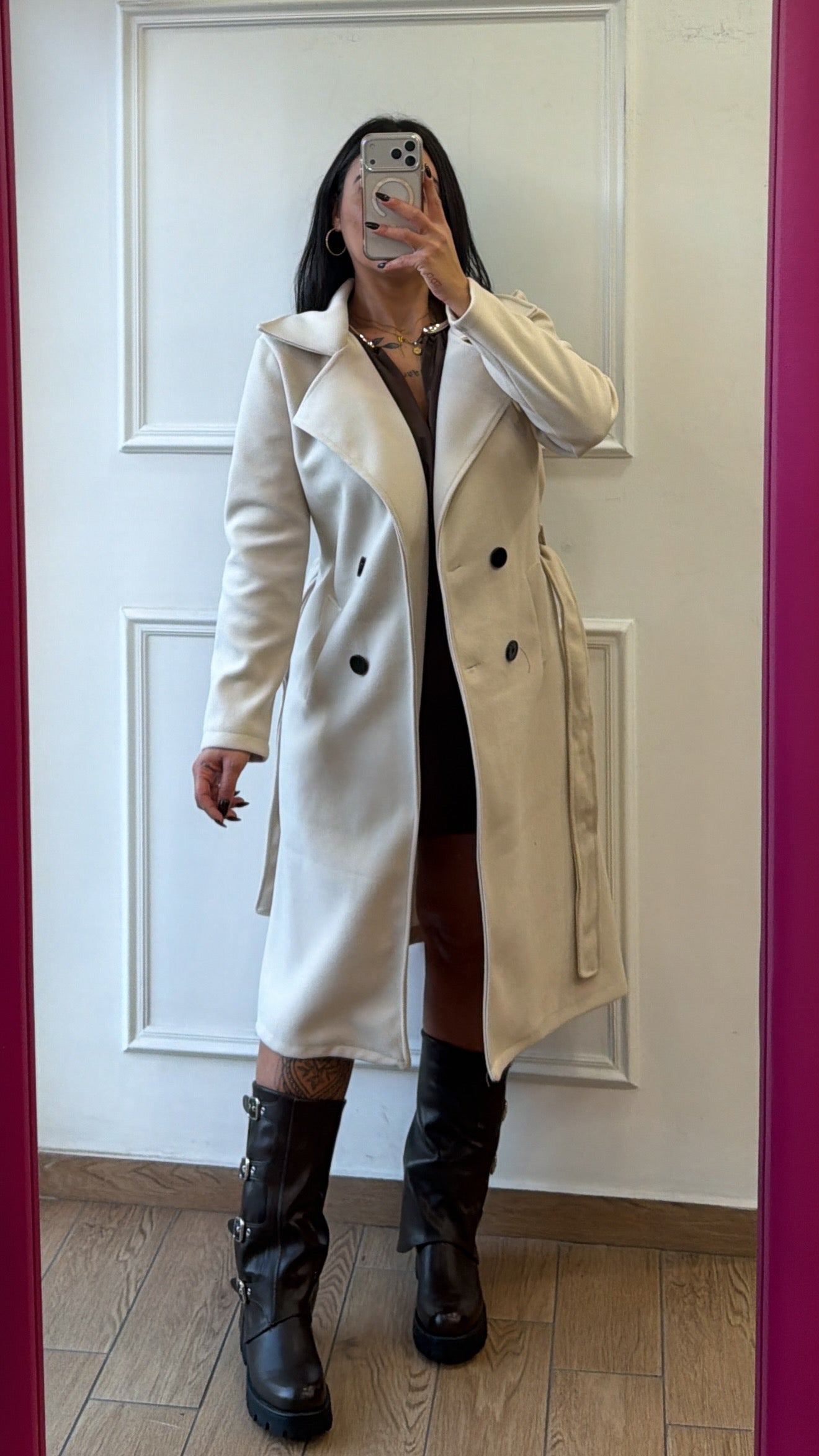 Cappotto in lana con cintura taglia unica vestibilità fino alla taglia L