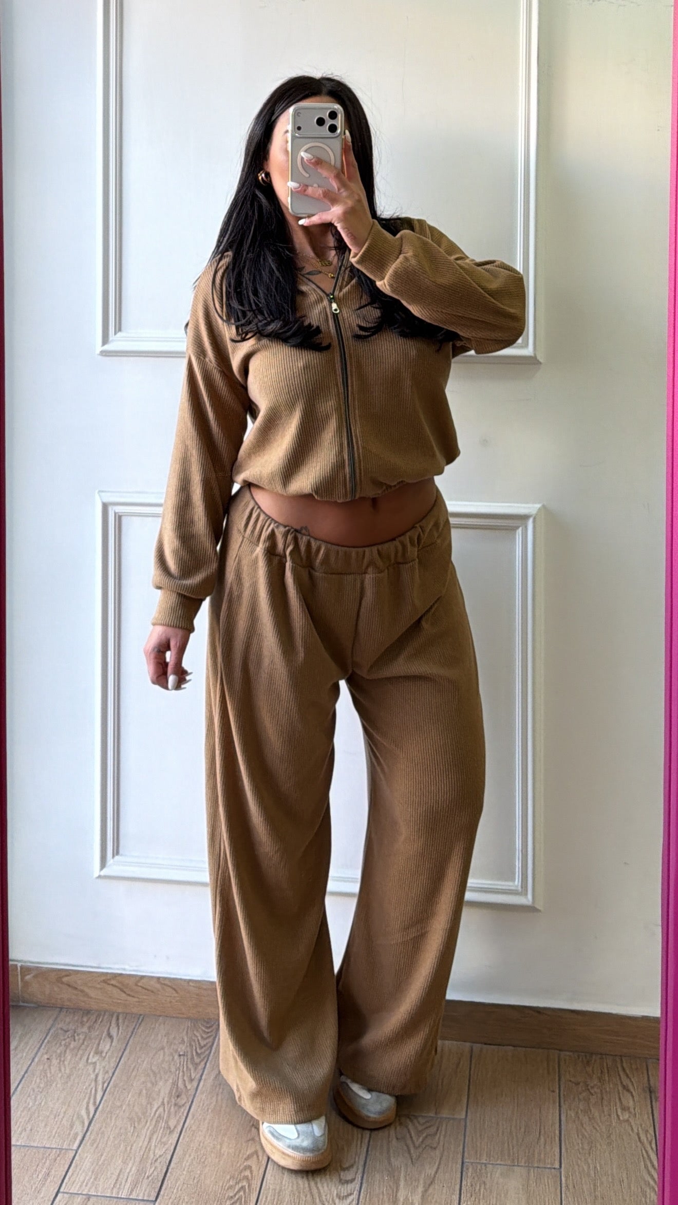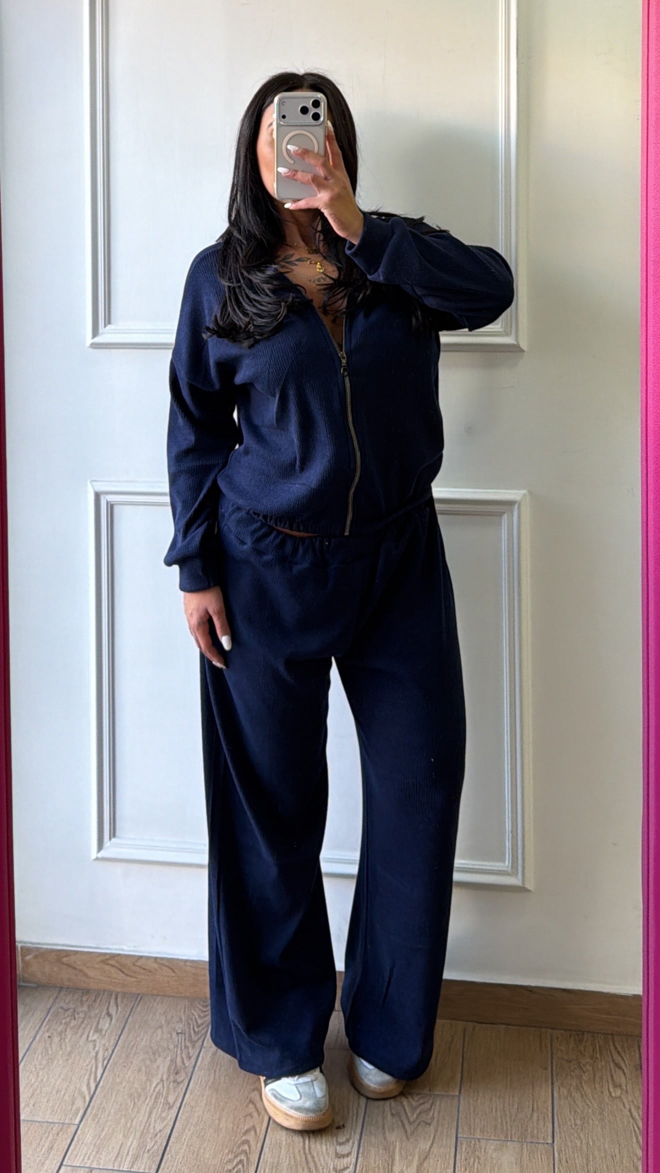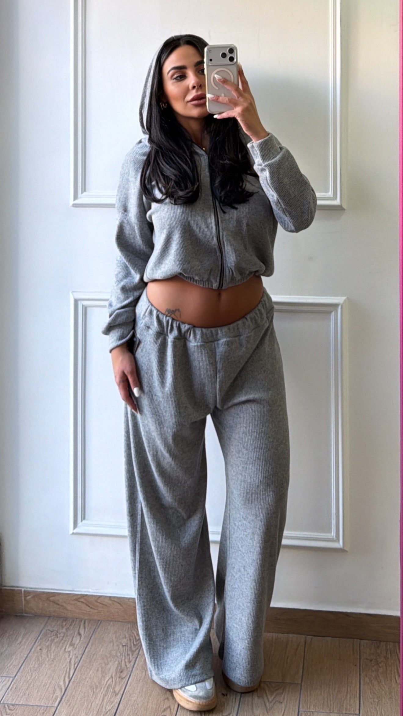 Coordinato in lana con felpa zip e cappuccio e pantalone palazzo vestibilità fino alla XXL