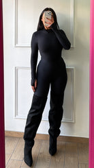 Coordinato in lycra Leggins contenitivo vita alta con body collo alto taglia unica vestibilità fino alla XL