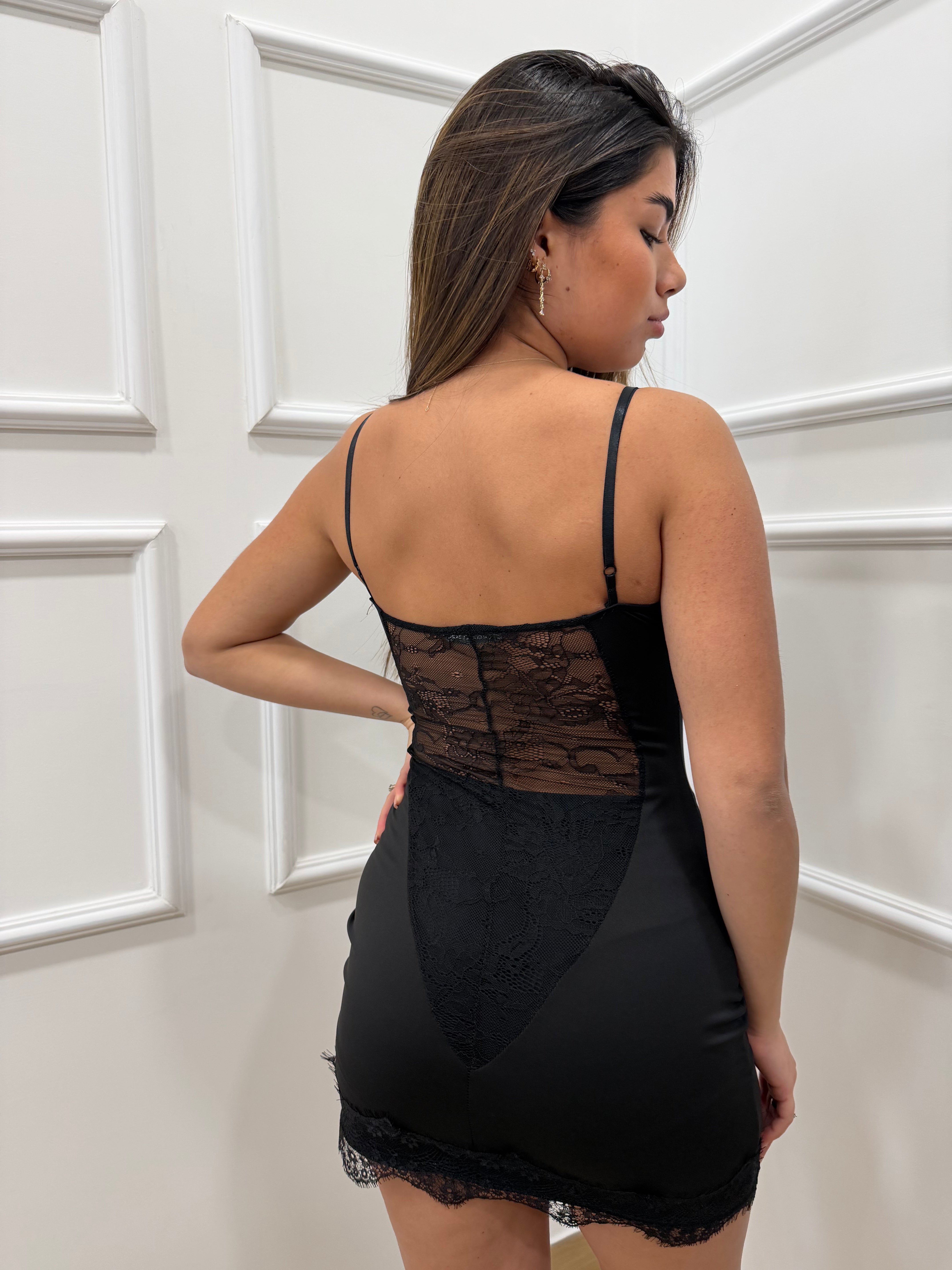 Abito in lycra con dettagli in pizzo taglia unica