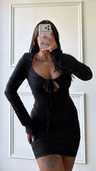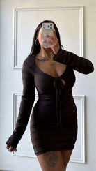 Dress in tessuto elastico con laccetto regolabile sul davanti e manica leggermente a campana taglia unica