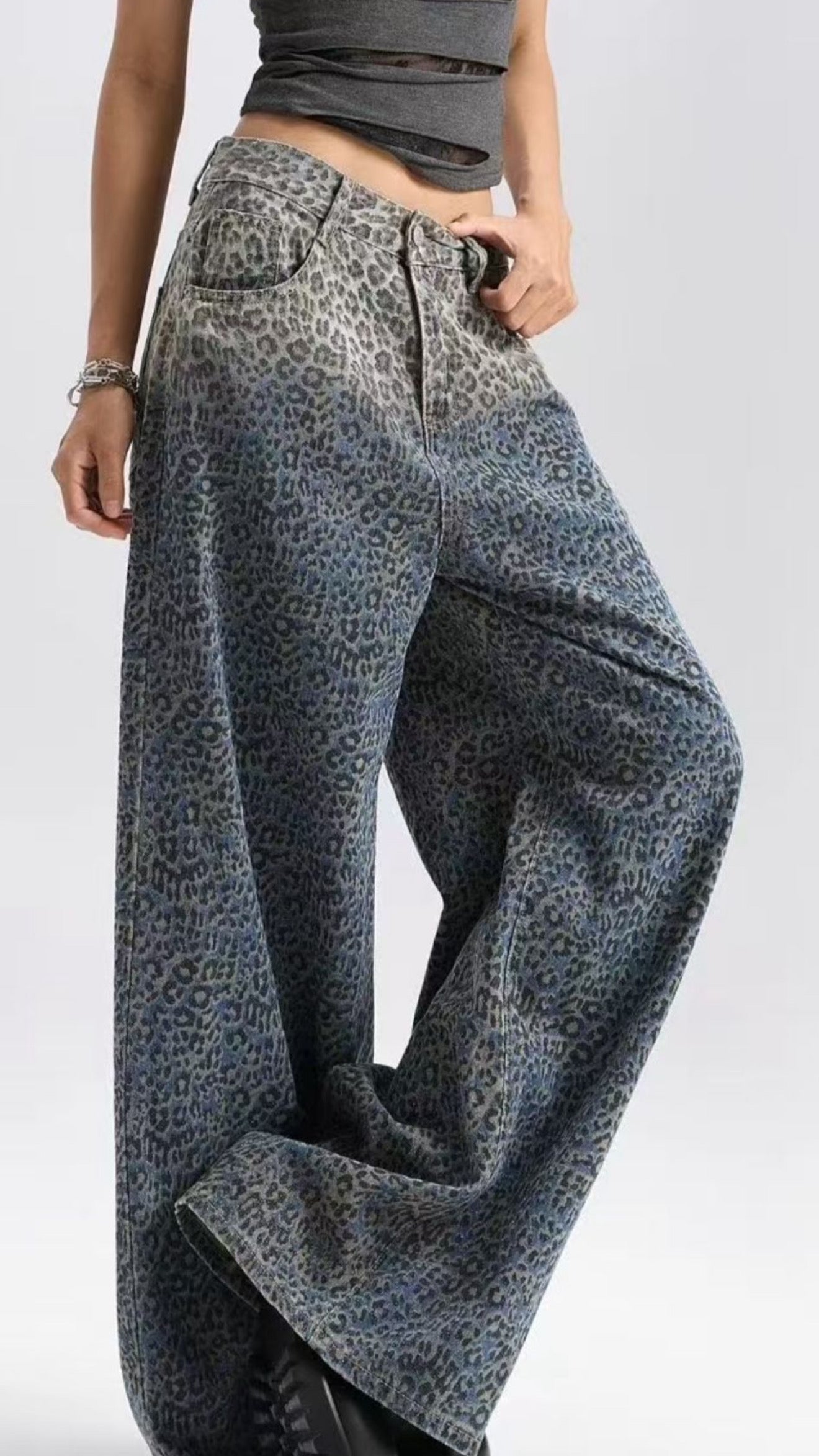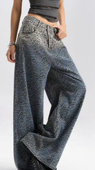 Jeans a palazzo gamba larga con sfumature fantasia animalier.