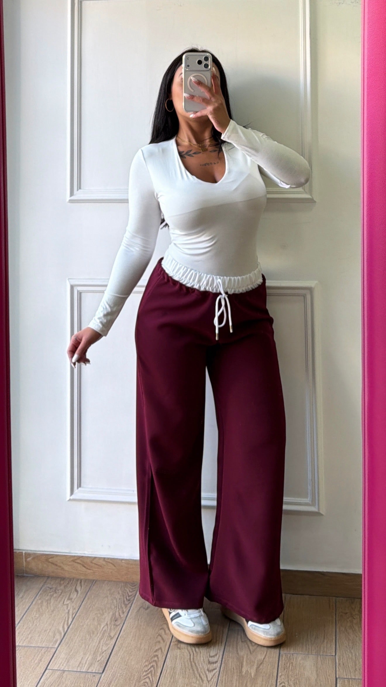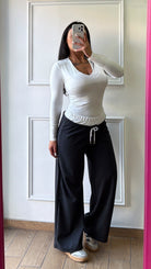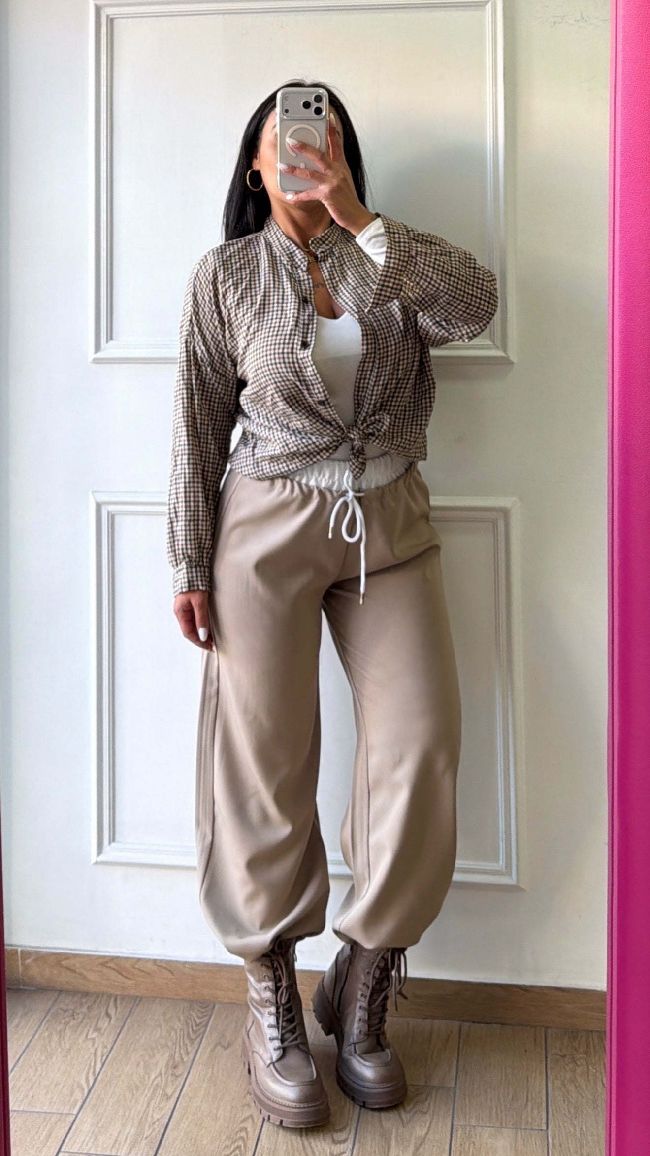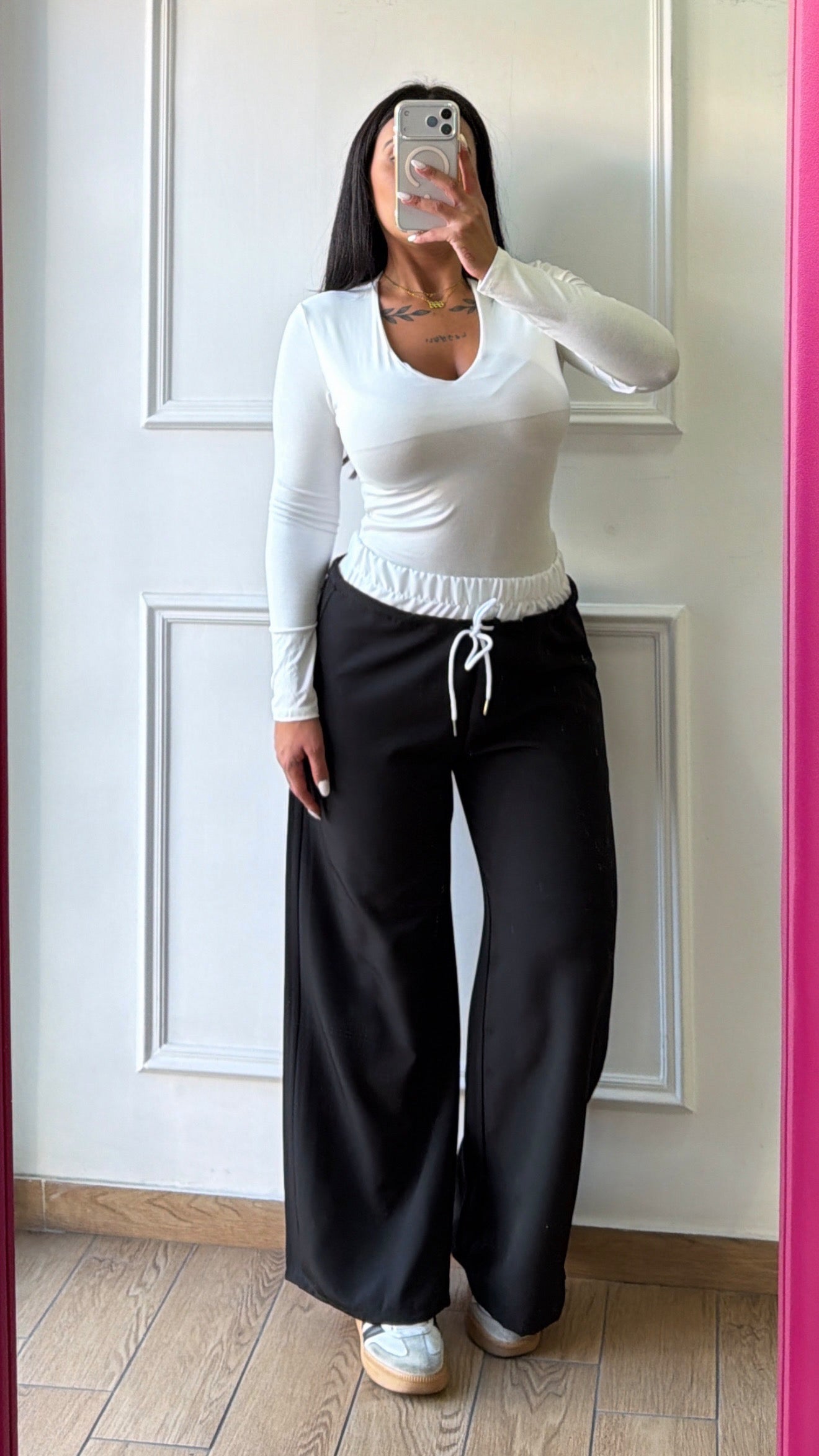 Pantalone in tessuto con elastico in vita taglia unica vestibilità fino alla tg L