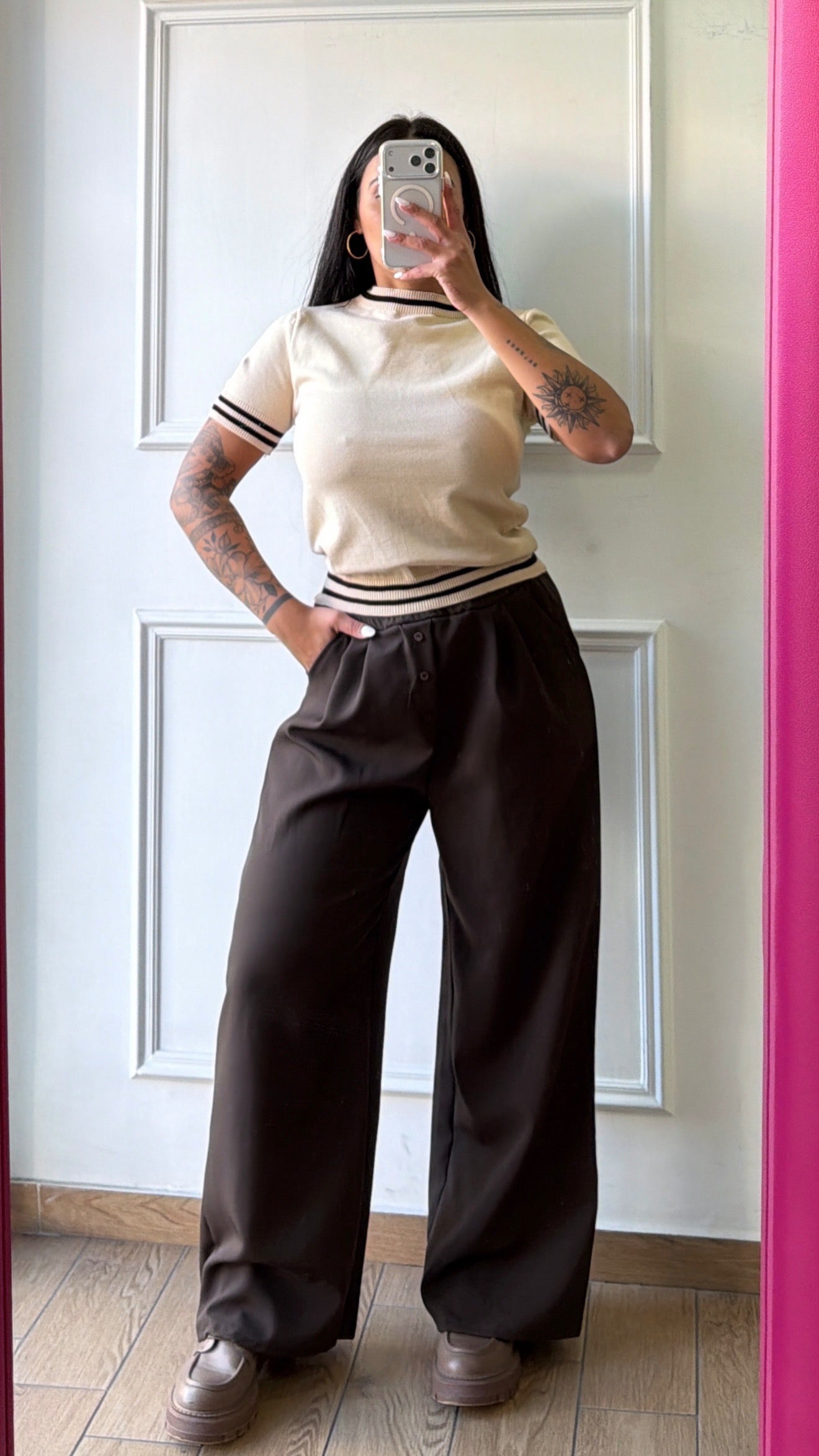 Pantalone palazzo con elastico in vita taglia unica vestibilità fino alla XL