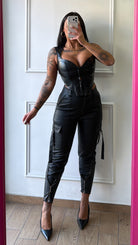 Pantalone ecopelle con dettagli argento, consigliamo una taglia in più!