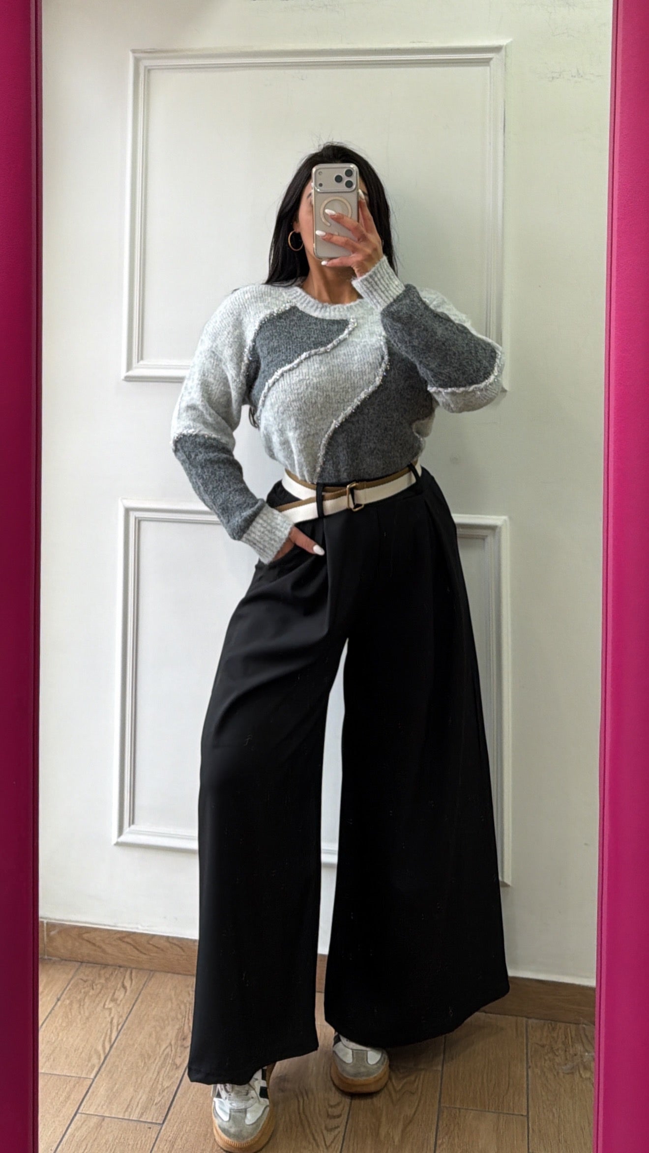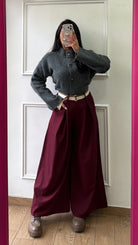 Pantalone a gamba larga con elastico in vita e cintura inclusa taglia unica vestibilità fino alla tg L/XL