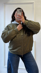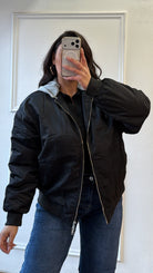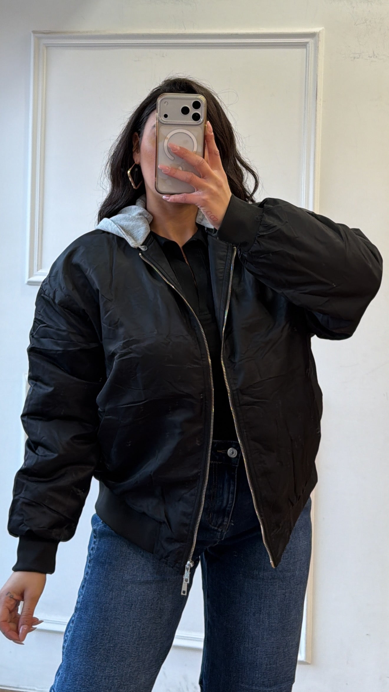 Bomber imbottito com cappuccio in felpa removibile taglia unica
