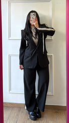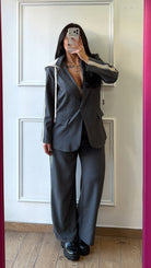 Tailleur con bande laterali e cappuccio in felpa estraibile taglia unica pantalone palazzo con elastico sul retro vestibilità fino alla taglia XL
