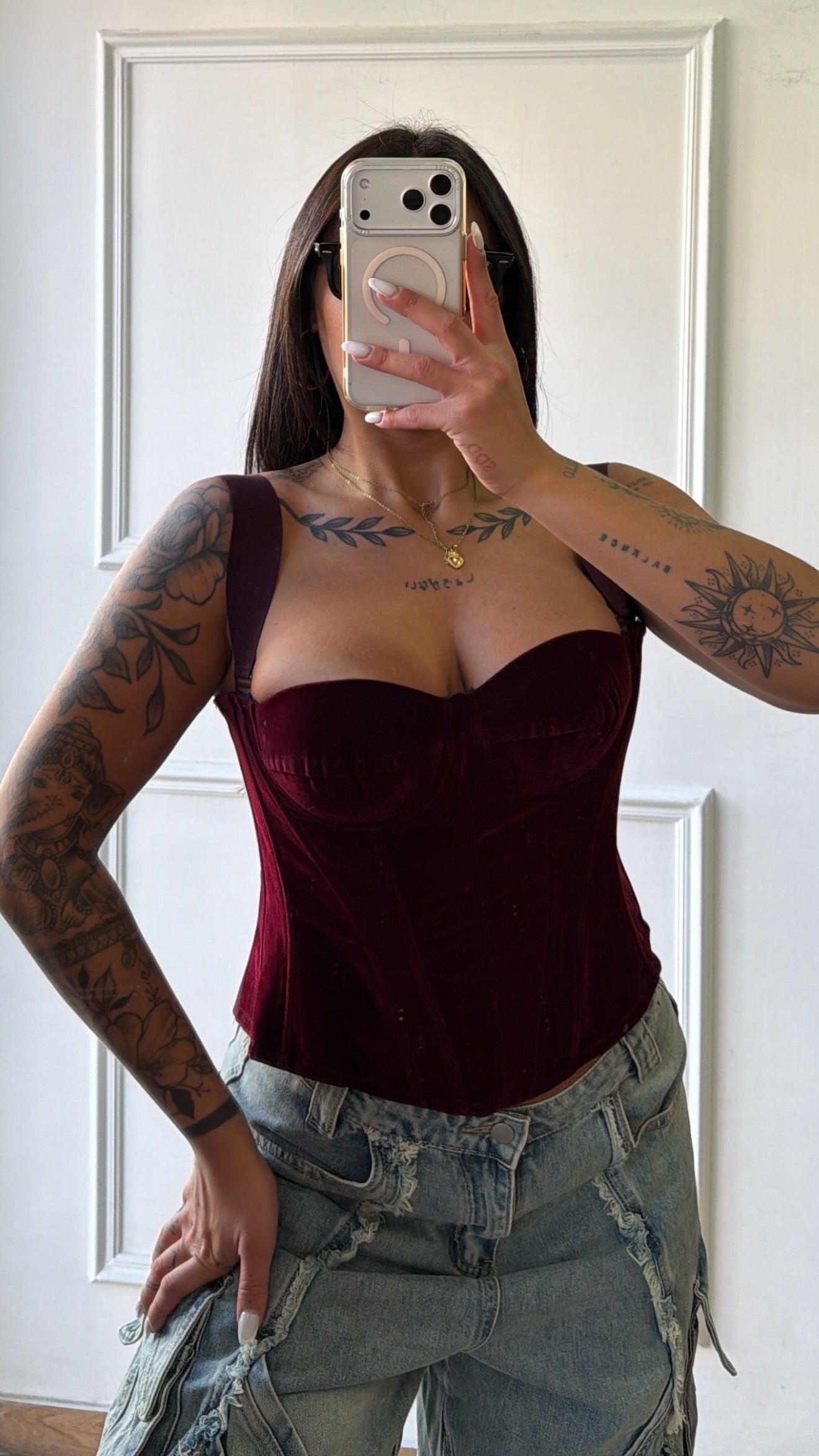 Top in velluto taglia unica con bretelle removibili e zip sul retro