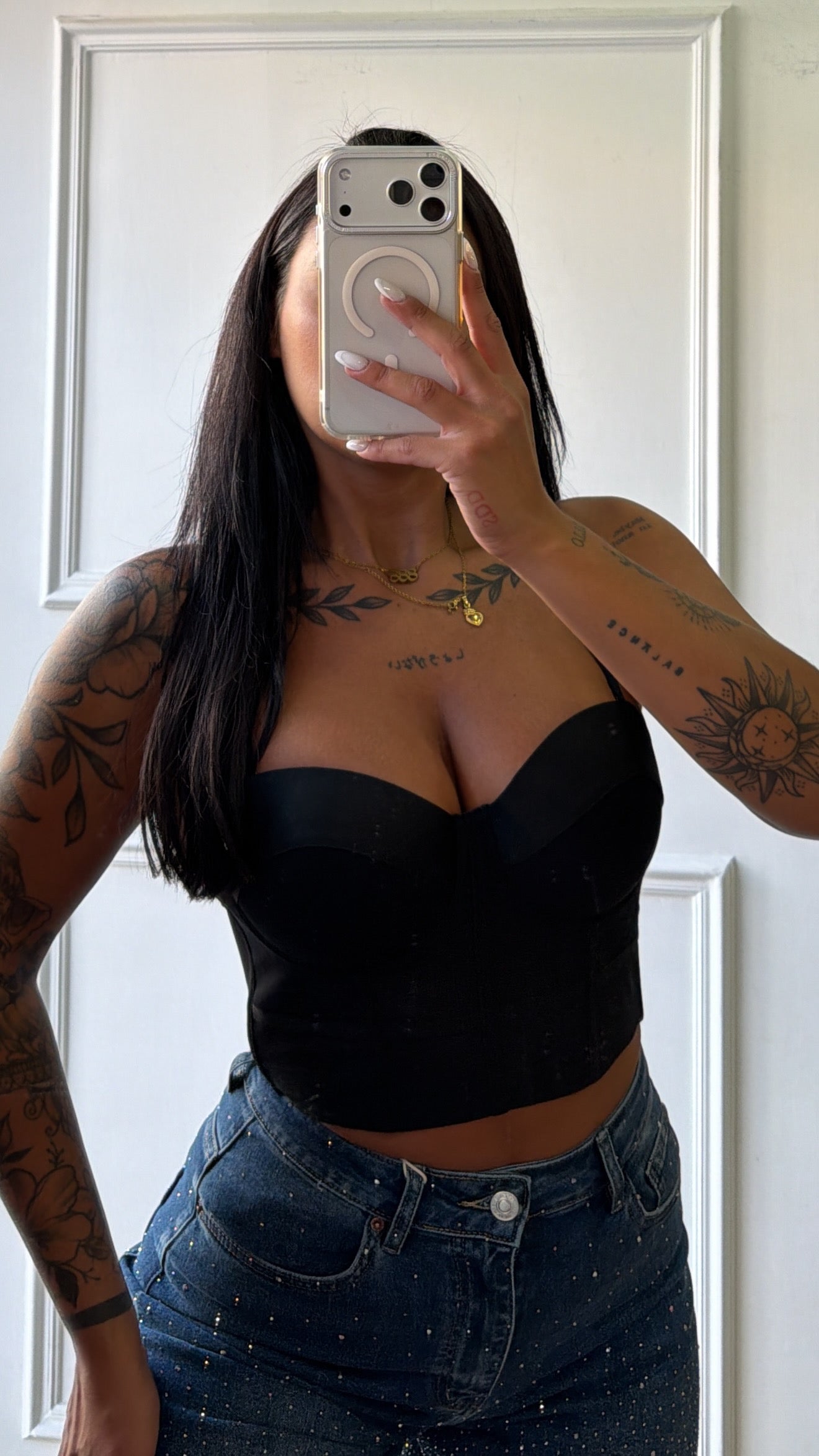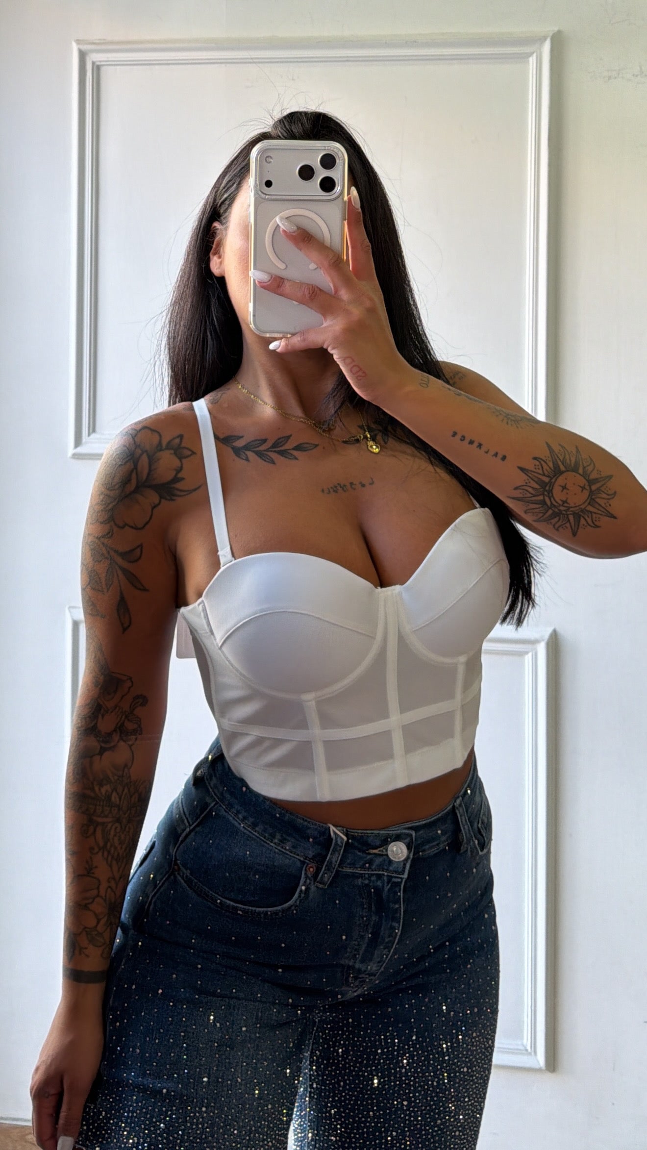 Corpetto con coppe imbottite e ciappette regolabili sul retro.