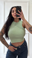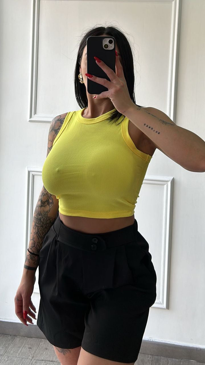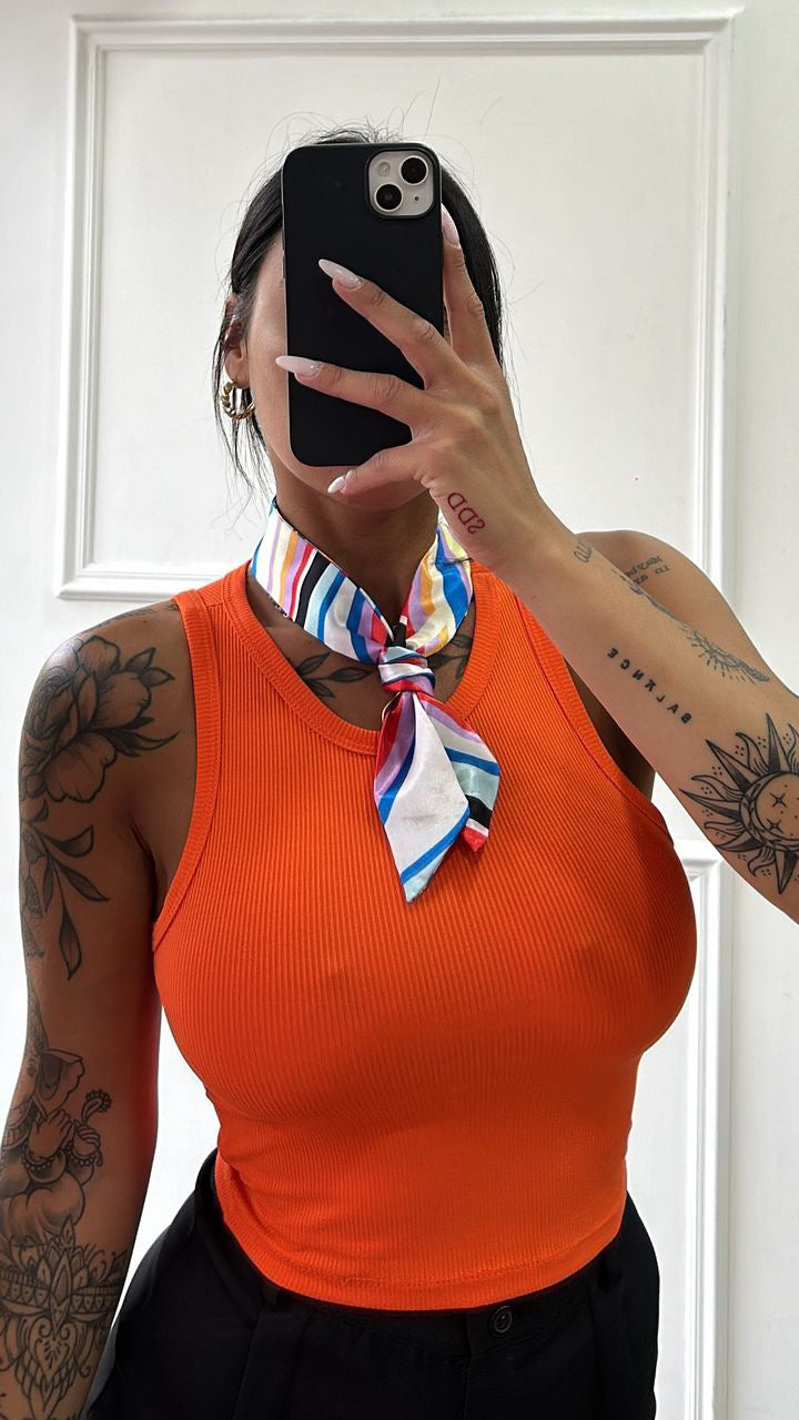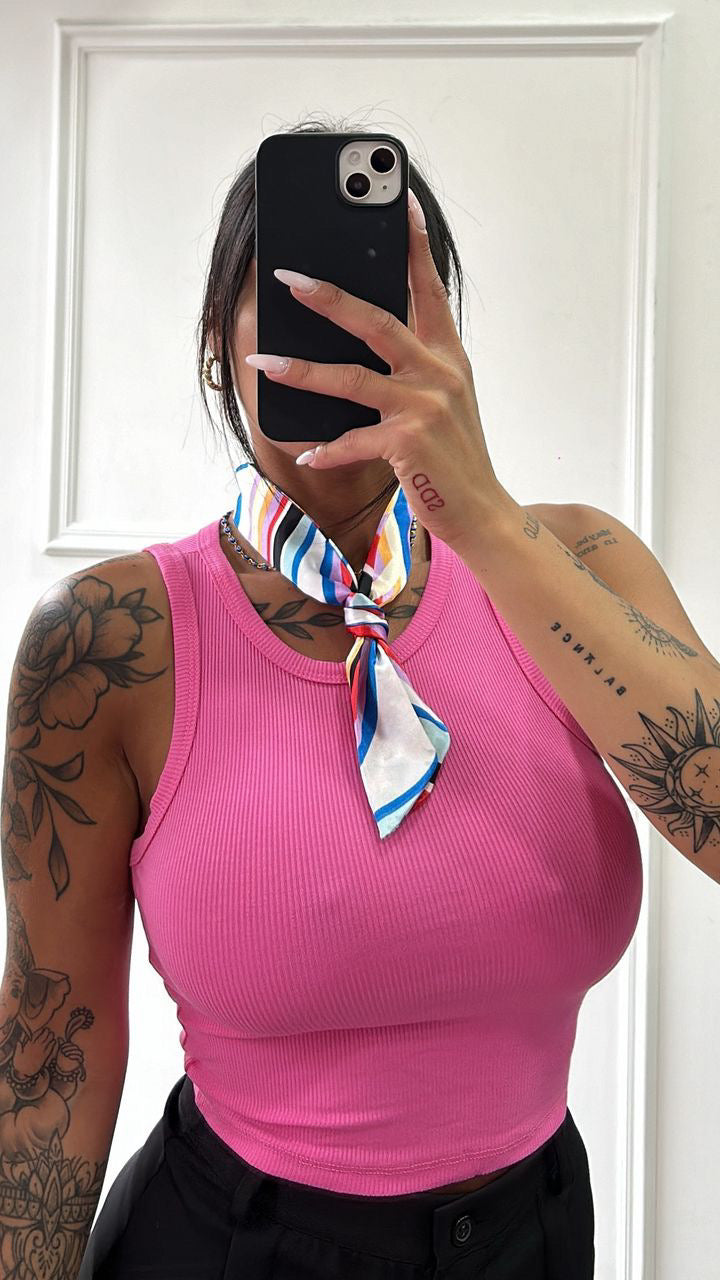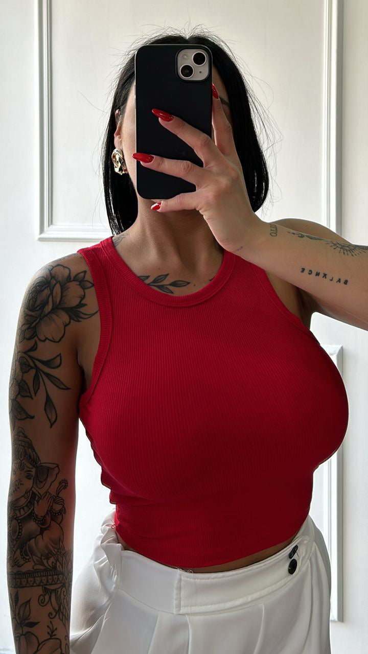 Canotta a costina elasticizzata con vestibilitá fino ad una XL.
