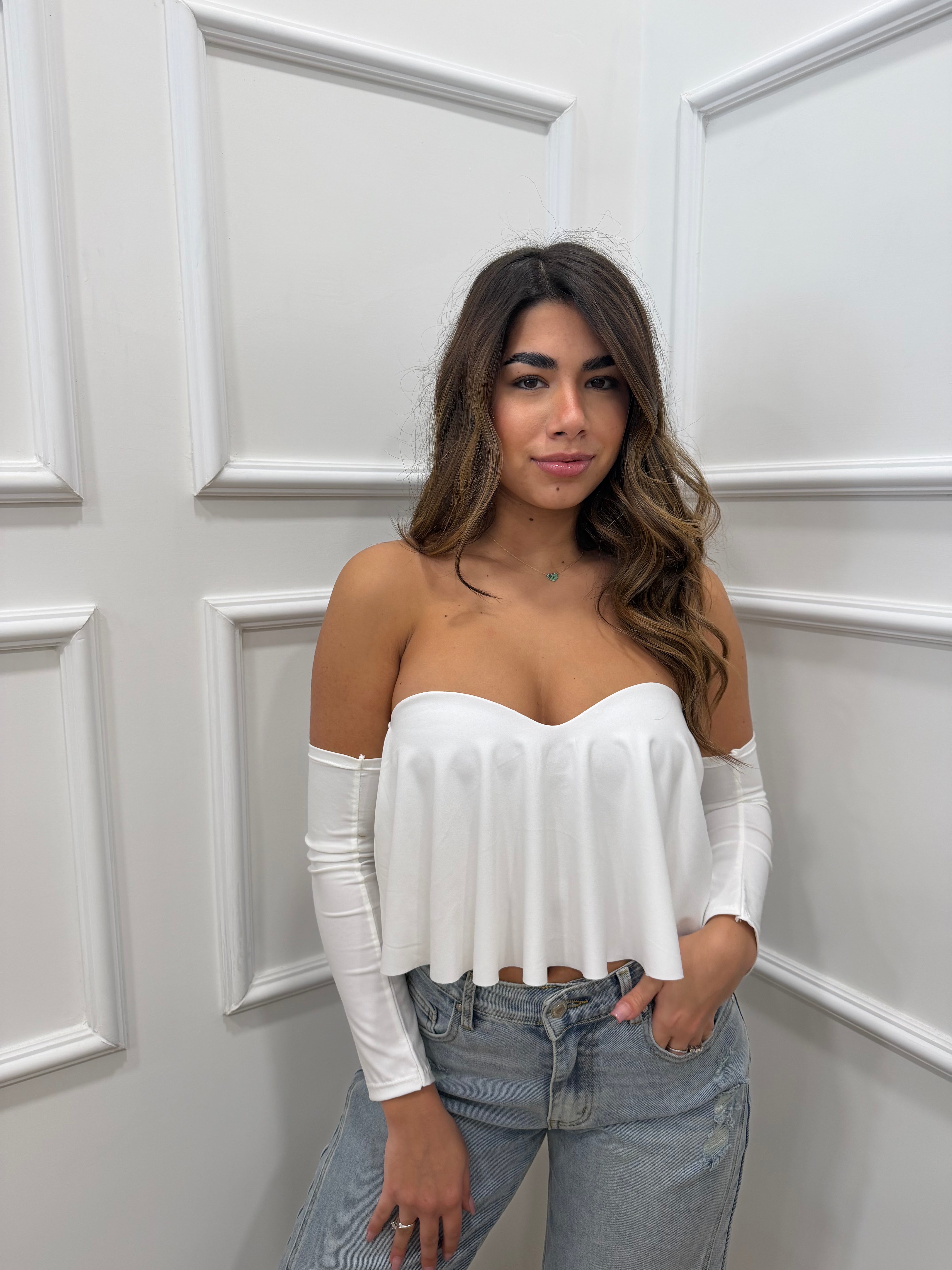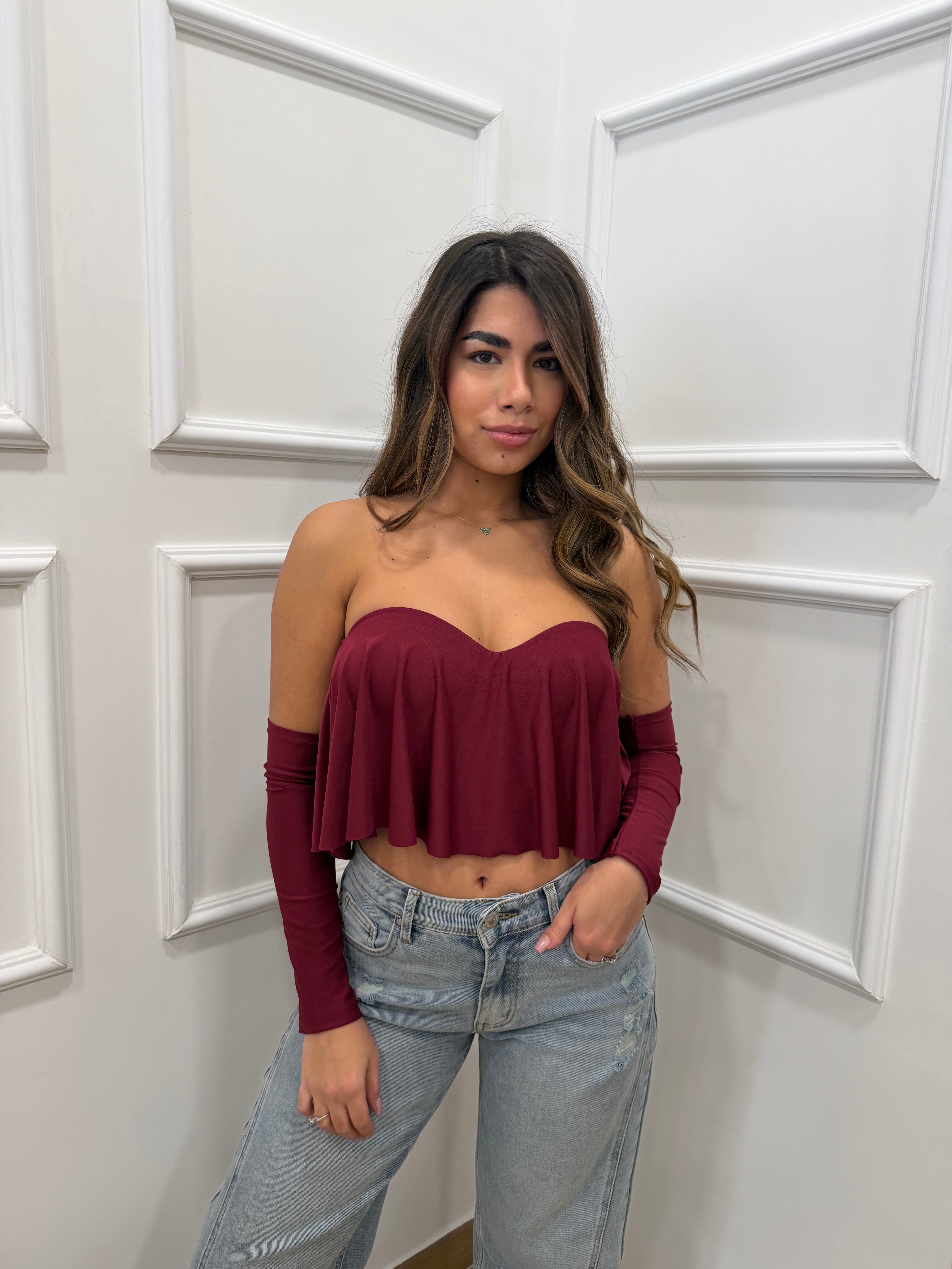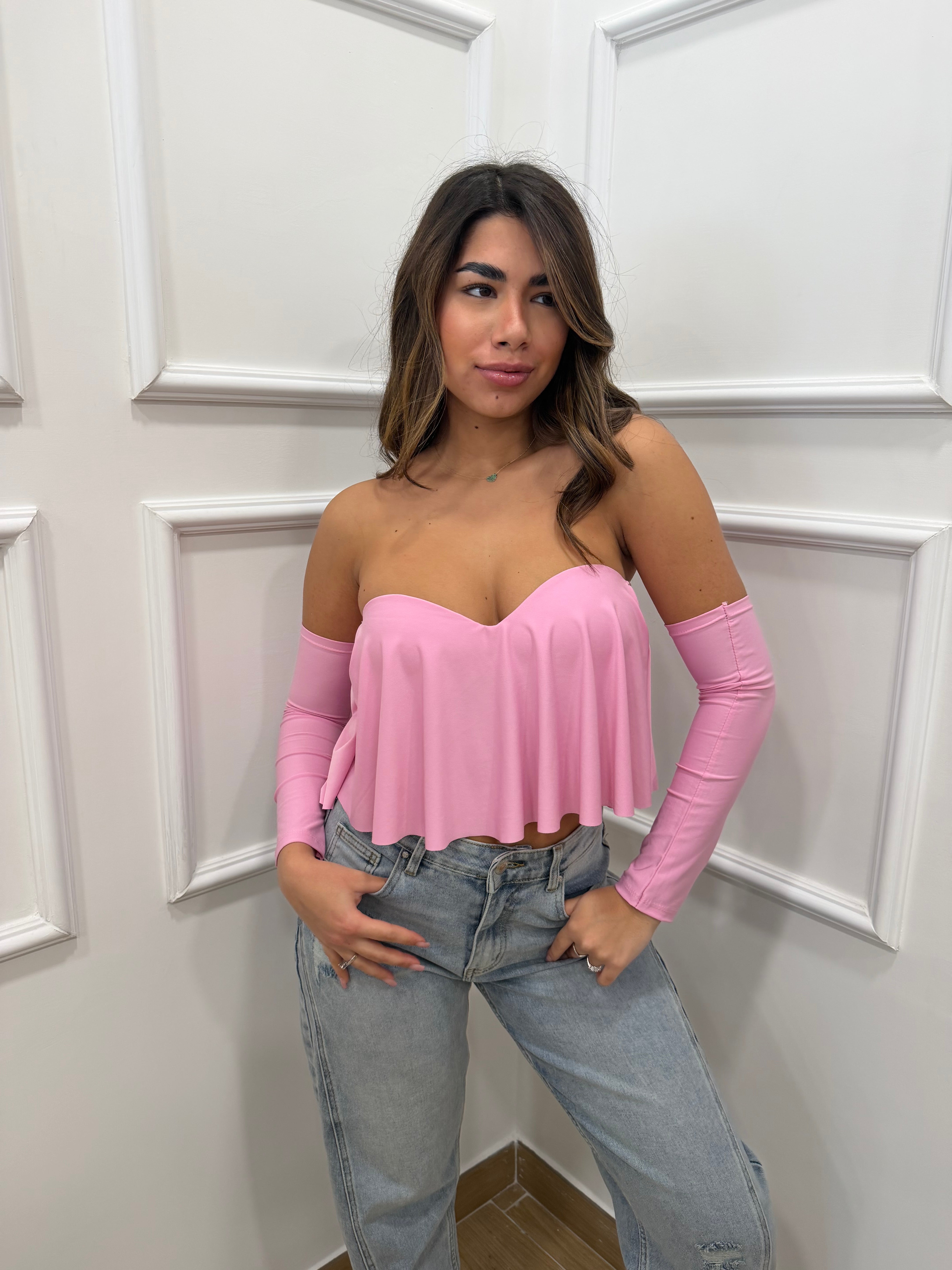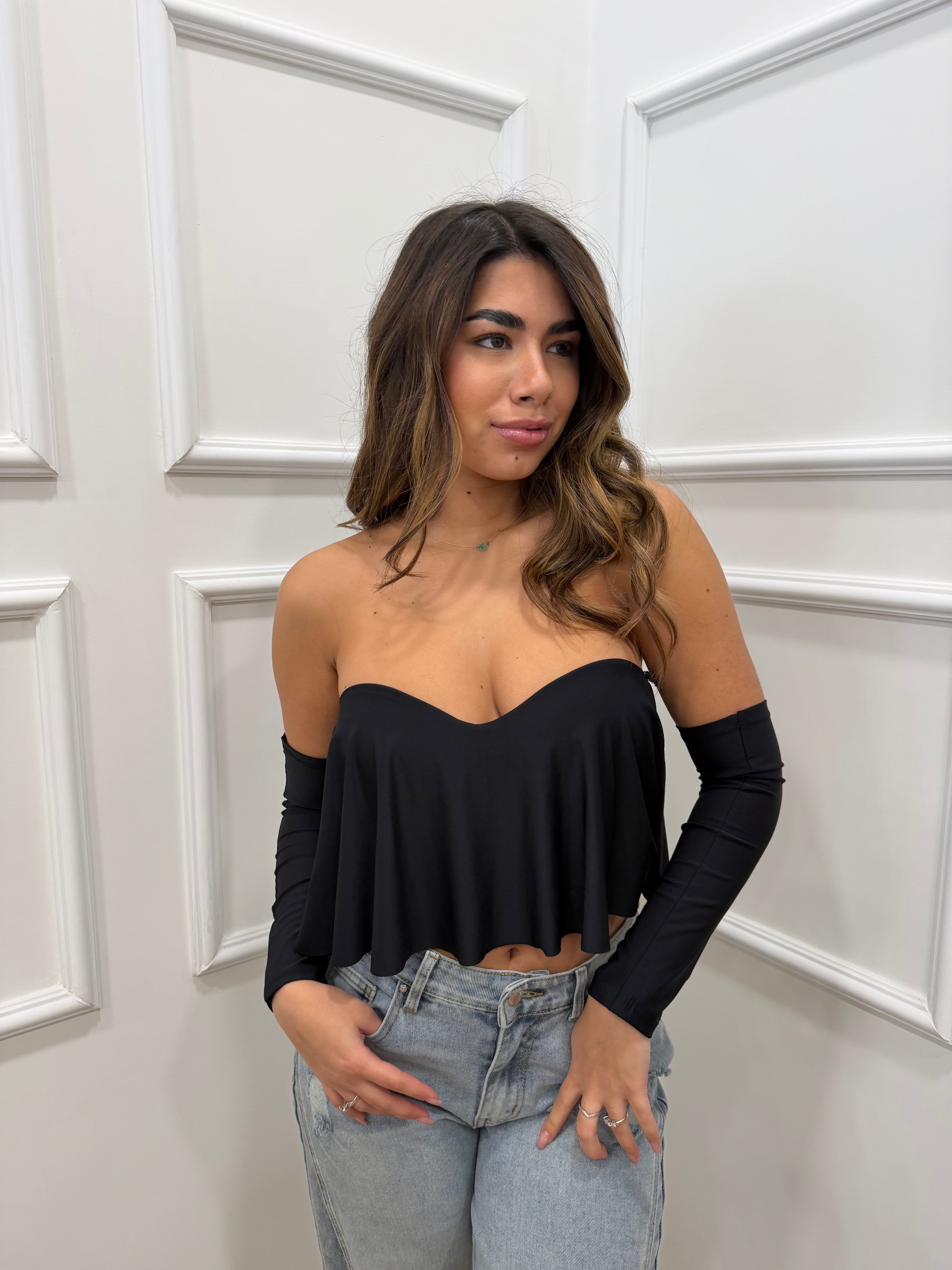 Top con coppe e manicotti inclusi in lycra taglia unica