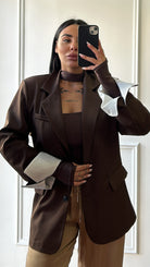 Blazer oversize con spallina e risvolto in camicia.