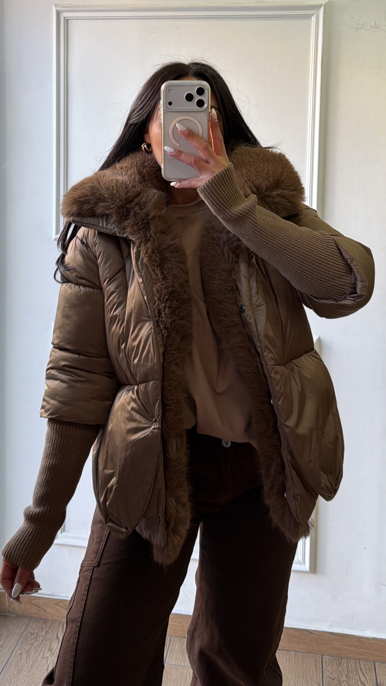 Giubbotto imbottito con pelliccia removibile e maniche in lana